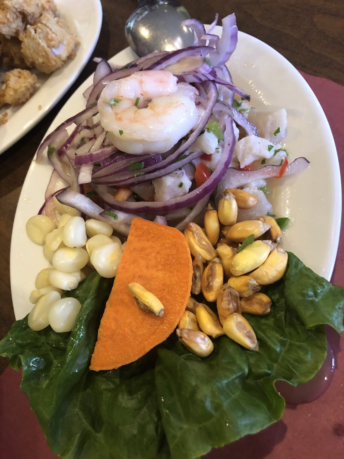 Felt like having Peruvian slash Mexican. Of course, it was the weekend, and they had music for us to enjoy, of course , with our delicious meal. We ordered: Jalea al Marisco (to share) and each of us ordered our own dishes. Lomo. Saltado, fish taco meal and choros a la chalaca. Portions are huge for this location. Be prepared to have leftovers. Everything was yummy. For drinks: we ordered a 1/2 pitcher of sangria. We also added some pisco sour to make it less sweet and more stronger. I still think puerto 27 and limon still have then best sangria. Even though, we still will be back...