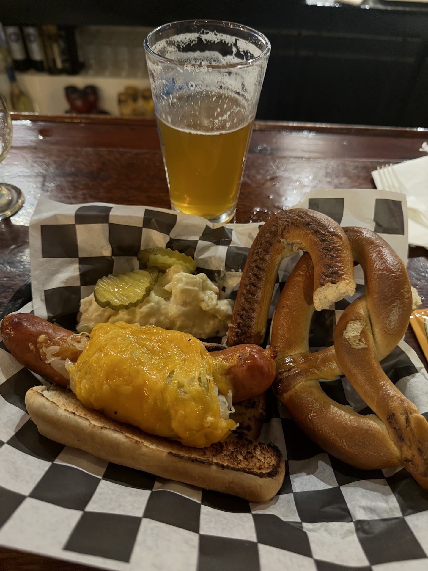 I was not offered a menu or given any way to see food options when asked what I wanted to eat, so on my own I opened the website and ordered a Seahorse Sausage from there. I was not given the listed side of potato salad, and the sauerkraut and cheese on the sausage was mediocre. I was charged the full price.