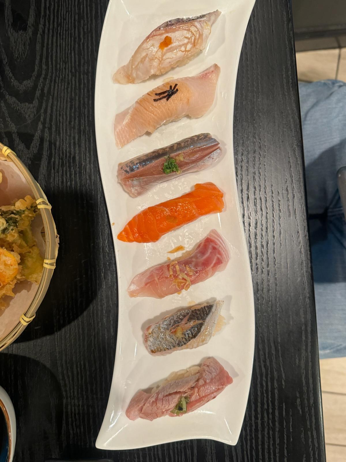 Read moreWe've been eager to try this new sushi restaurant as the reviews seem to be positive. We ordered the nigiri omakase (7 PC) and Chirashi bowl, chicken karaage, and combination tempura. The tempura/ karaage was good only wish they included the ground radish as it appeared on the photos. The karaage tasted different the normal kaarage we normally get from other places, this one had cumin. Now what I was really excited about was their sushi/sashimi and very disappointed. The fish in both sushi and sashimi were off and tasted old and fishy. Also, there were 3 pieces of fish with tough sinew and found a piece of fish scale after biting into it. The service was good however, they came back to pour tea a couple of times which was their saving grace. Would I recommend? Probably not because sushi needs to be very fresh not fishy taste. Maybe they had...