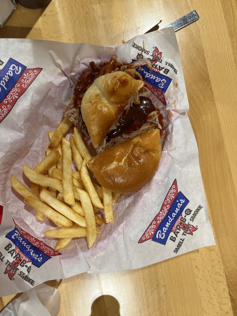Read moreWe love smoked ribs, smoked meat, in general; and like to get it without sauce. You cannot get ribs without a thick, overly sweet sauce, at Bandanas, that they say is just a dry rub! LOL! It is far from dry, and sloppy, and detracts from taste of meat, which does not seem to be smoked at all . . . Just slightly baked. The ribs were meaty and tender; and if you like yours sweet and gooey, then this is your kinda place. The manager said they came pre-prepared with this “dry rub” already on them. Perhaps they are frozen when they get to individual stores, and it just seems dry to them, when they put them in the oven to heat. ???
