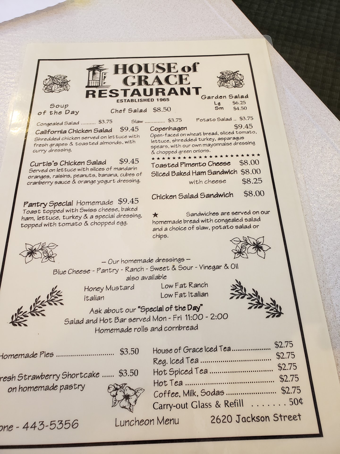 Read moreI visit Paducah about 2 or 3 times a year and this is my favorite salad in the world...Curtis Salad. It was 15 minutes until they closed...I called and ask and they said come on down..they set me up I had my salad and they were AMAZINGLY kind. Great service great food...House of Grace is a "no miss"...