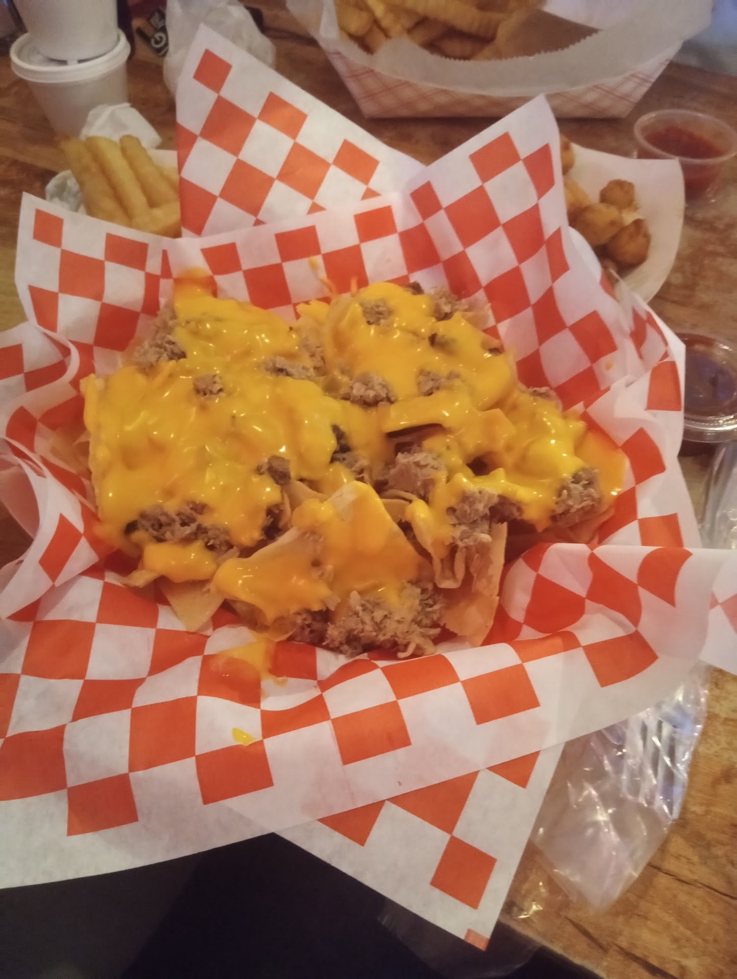 I used to love this place. The food was amazing and cheap. But they've slowly gone down hill. Walking into the restaurant is the bar with some booths. Then you walk back into another rooms with booths, then a small alcove with booths and finally the back room! HUGE. Tables in the back and even a back patio and warm room for those colder nights. Seat yourself!! This hole in the wall used to be THE BEST hands down. Loud music, great atmosphere, great people and great service. I realize that Covid has messed everything up. They've recently raised prices quite a bit. And the food doesn't taste as good as it used to and with the FEW exceptions to waitresses, service is terrible. They have taken a lot of the tables out and practicing social distancing. Maybe that's why the service is terrible š¤·āāļø the only thing consistent in the restaurant is messing up orders. Nothing tastes the same as it used to. I was very disappointed with our BBQ nachos with the exception of their AMAZING BBQ sauce. You can literally drink the stuff!! The super nachos were an absolute joke. I remember when the nachos were so big, 3 people could easily eat off them. Now they barely have enough to feed a child. The burger was good. Always, ALWAYS get Texas toothpicks!!!! And their fried are amazing!! The fried cauliflower was delicious. I'd still recommend at this point, but there are certain things that I will stick...