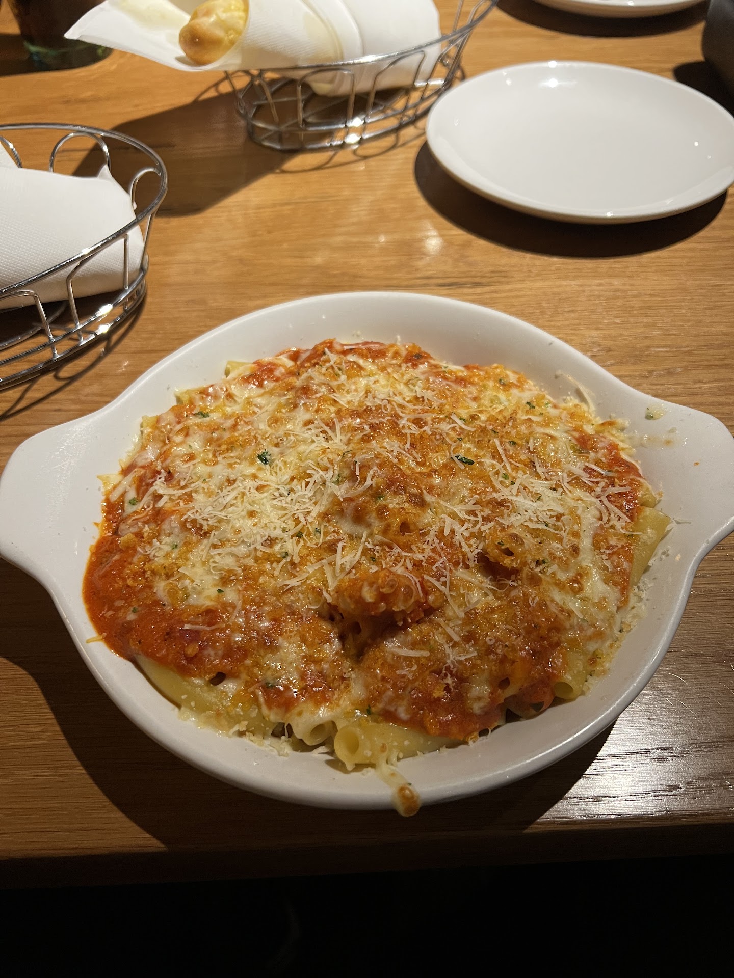 If you are expecting authentic Italian food, this is NOT the place to go. However the teens enjoyed their meals in spite of that. I had shrimp scampi and it was a soupy wine sauce with very short pieces of overcooked vermicelli floating in it and lots of tomatoes. I did not enjoy it as the wine was overpowering the other flavors. It was nothing like any shrimp scampi I've ever had, and I'm not unusually picky.