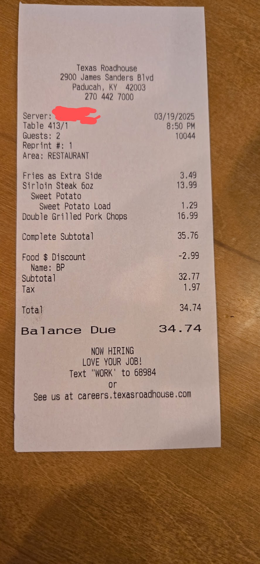 We started off the dining experience at 9pm Friday being immediately seated after checking in online. Our server spilled the drinks all over the floor, splashing us and our neighbor. She was unapologetic and said, "It happens!" She took my wife's order and then when she came to me, I had to stand up so the bus boy could mop the floor. I clearly stated I would like the "Porterhouse" to which she asked if I wanted bone-in? I shook my head and explained to her that the Porterhouse only comes with a bone, it's not an option to get a boneless Porterhouse. She said they do offer it here! This was my first clue she was going to screw up the order. I requested it to be cooked rare and tried to explain that our previous experiences at TRH they overcook the steak way beyond an acceptable level... But before I could tell her anything she was gone. When the kitchen staff presented our meals, he brought my wife's meal out and it was correct. But what he brought me was a Prime Rib with Bone in. I told him I ordered a porterhouse, not prime rib. He agreed that this was not a Porterhouse and took it away. He came back a few minutes later and said the order was for a prime rib and wanted to make sure I hadn't changed my mind after ordering. No, I clearly stated to the server I wanted the Porterhouse and I even made it clear that Porterhouse steaks do not have a bone in option, it's a standard feature. He laughed and then apologized on her behalf saying she obviously didn't understand what I was asking for. While they were correcting my order, a gentleman in a purple TRH polo stopped by to ask if everything was okay. I explained the situation with our meals and he said he would be putting his hands on this matter. About 12 minutes after the manager stepped in and long after my wife had finished her meal, my steak finally arrives, cooked blue rare. I was pretty upset by this point. I was almost through with my steak when our server finally showed back up and asked if my food was okay. "It's kinda late to ask now," I said. She did not apologize for the miscommunication at all. She said it was an error on her computer. Way to pass the buck, considering she didn't know what a Porterhouse was... but she left the bill and walked away before I could ask her about a box. And the next time she came to the table, she took all of our food away, no offer for a takeout box, no offer for desserts or refills on our drinks. Just the receipt asking for a nice tip if we don't mind. I have never been made to feel so unwelcome at TRH before but this experience has been the worst. We were trying to overcome a tragic day in my history. I even tried to explain to our server that it's been a long road to recovery since the accident and we were hoping to finish the day out on a pleasant note. She seemed uninterested and just wanted to get through with this order so she could get on to the next. And finally, the entire time we were dining here, we watched this young guy at the host station who was wearing a TRH shirt, spend most of his time playing on his phone! (See photo) the person who presented our meal said his name was Riley. The manager said he is usually a busses, but he had to ask him to assist the hosts because too many people called out. In the 74 minutes we were seated at the table, he sat exactly 3 parties while the other two girls did the rest. And meanwhile he was on his phone or chatting with the other two hostesses. Any time the manager with the purple polo was close enough to observe him, the phone was hidden. Otherwise he had it out in plain sight and was actively chatting with...