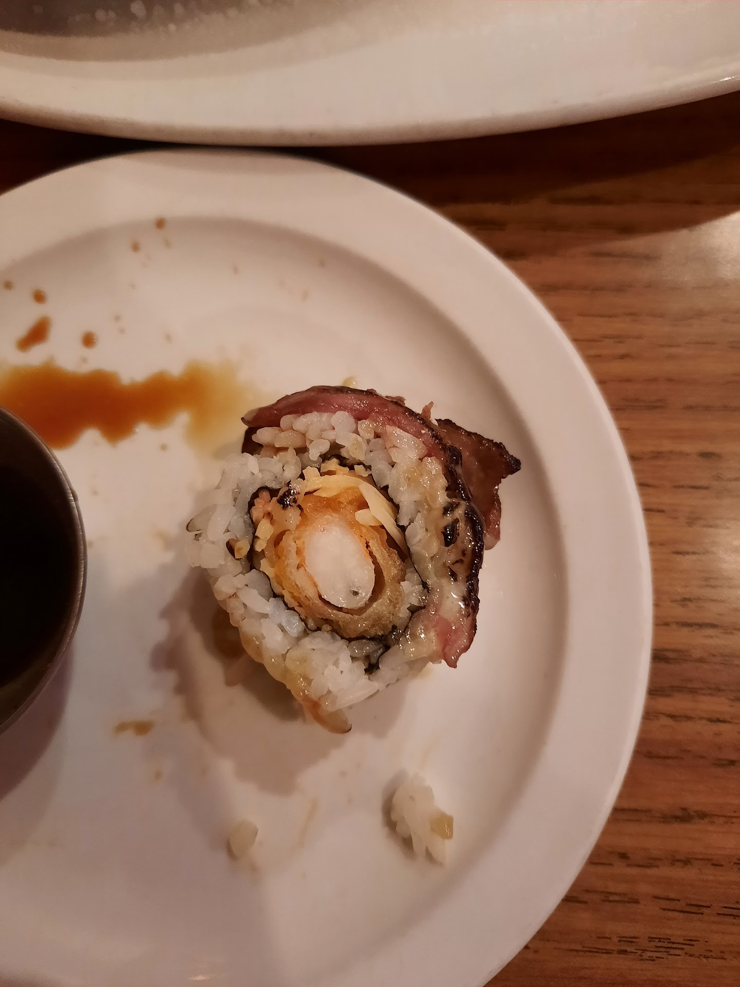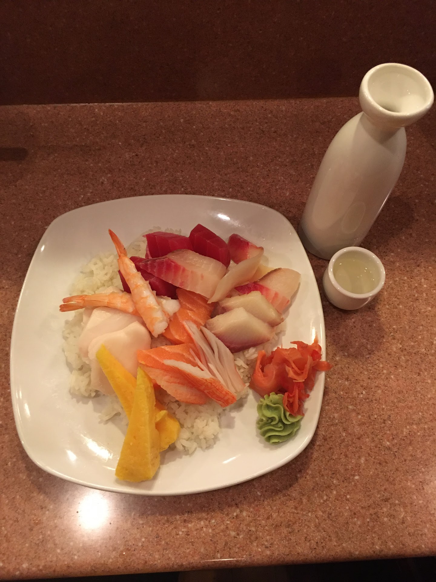 Plus, never. And I mean, NEVER, judge a place by the outside. Americans have gotten used to the best places looking great on the outside as well as on the inside. Though that is good, but with Japanese, and Chinese places, the outside does not matter in how good a place is. Go inside Tokyo Shushi and you see a beautiful place. It’s well kept and has warm colors making one feel calm and comfortable. It’s design is neat and not too cluttered despite how surprisingly small it is. The music isn’t too loud and is exactly what it should be: background music. Hearable but not too loud making it very calming.