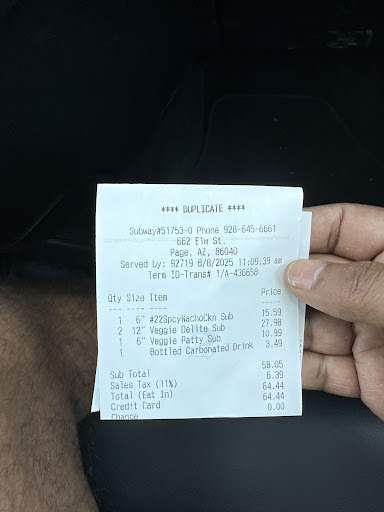 Read moreBUYER BEWARE! This location is absurdly overpriced and somehow a dip in quality? I thought franchises would all be the same. I just paid $59 for a footlong and 3 six inch subs. The produced looked anemic and the customer service was just about as bland. My wife and kids are going to end up tossing about $35 dollars worth of this meal, shown in the pics. That combined with the filthy tables… we won’t be back (tables are icing on the cake). This is a good midway point on our road trip we often take and want a better option than fried food… not sure if the Walmart location is any better, but I’ll check those prices before the next time we...