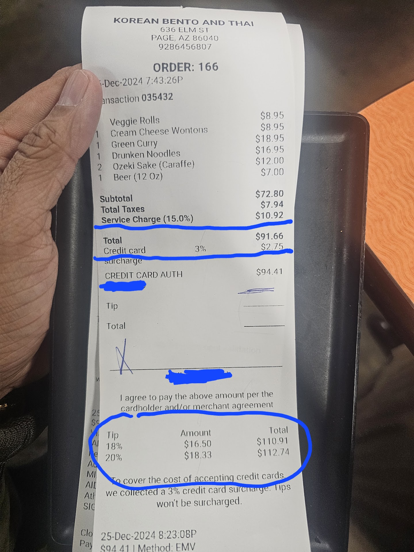 I noticed that most of the guests at the restaurant were tourists like us, who will most likely only come here once. And also there is no other Thai food restaurant in Page area and so there's no competitor for them. That, as we later concluded, encouraged this owner to care nothing about his customers and do whatever as he pleased.