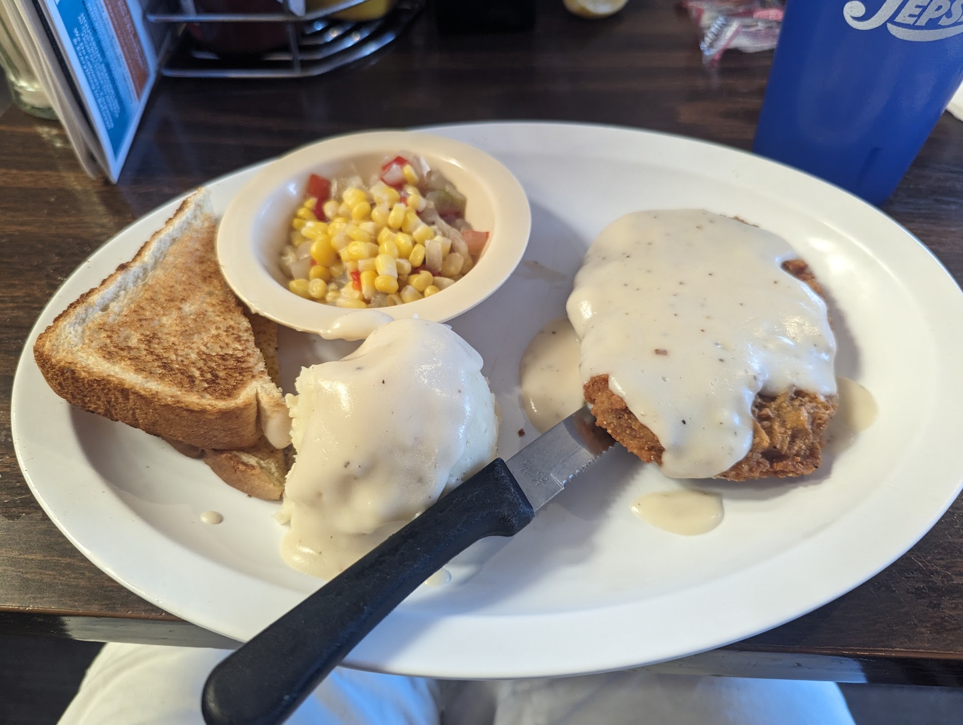 After checking out a few other breakfast spots around town, all of which were packed, we decided to try Ranch House Grille. Despite being busy, the staff was incredibly accommodating and made sure to find a table for the two of us.