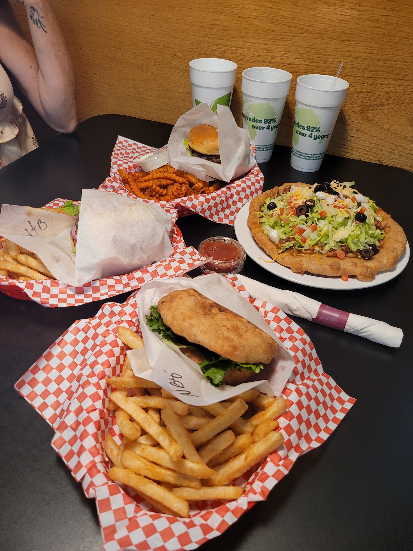 Read moreI moved to AZ years ago, and when I lived in that area, we went out to eat there a lot. We then moved to another area of Az and didn't get to go as often as we liked as it was a long drive. When we had business to attend to yesterday (1-15-2024) in Page, I searched online to make sure they had made it through Covid, and I was so excited to see they had. They have amazing food and a great atmosphere. I even suggested they expand to my area 2 hours away, lol. They have a large selection of amazing food. My husband had the Navajo Taco, and it was easily 10 to 12 inches round, he thinks. It completely covered his plate. I had a mushie burger (mushroom burger đ), which was so divine, and we had mozzarella sticks and onion rings. In talking to one of the employees he said the mom is who makes the Navajo flat bread, and my husband loved how it was perfectly soft for his jaw but still held its form for the purpose of the food. We looked at the menu online, and it was true to the menu in store, so we were able to know ahead of time what was offered and what the prices were. They can accommodate large groups as they have a second dining room in the back and the patio outside.