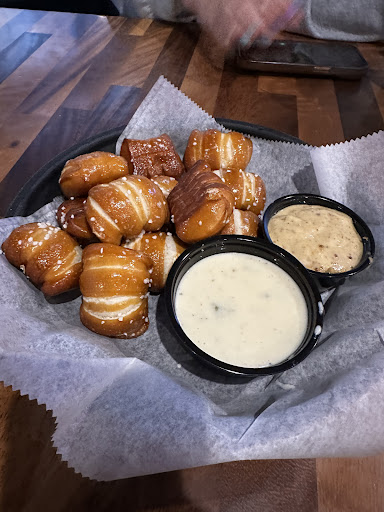 We were a mixed group of 13 adults and children and decided to pop into Rosie's on a sunny Saturday afternoon. The tantalizing smells emanating from the kitchen were the first hint that we were in the right place. We were fortunate to arrive during the lull between lunch and early supper and were immediately seated at a long table that gave us excellent views of the multiple flat screen TVs, playing basketball, football and the news. Two staff members came over to take our drink order and to help us situate the five children that were with us. As you can see from the photos, Rosie's has a nice variety of pizza toppings, pretzel knots, sweet or savory wings, sandwiches, and every kid's favorite, mac and cheese. The full bar includes unique Colorado beers, wine, and different types of liqueurs. As I wandered around, taking pictures, I noticed that the restaurant was quite clean and well organized. They seem to be well staffed with the manager multitasking by bringing out food, filling water glasses and ensuring that everyone was taken care of. Our food came out at different times which created a bit of rain ama for the kids because their food came out nearly last. I was the only one at our table who ordered a sandwich and it came out at the very end and unfortunately was a bit cold. However, the pesto sauce and the nicely toasted, crusty bread were simply fabulous! The chicken was well-seasoned and tender with a side salad of fresh greens. Most of our group ordered pizzas which arrived with plenty of cheese, toppings, and served piping hot.