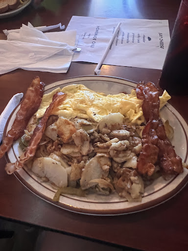 Read moreThis could have easily been a 5 star but some slight... And I mean slight..issues caused the lower rating. One, the sidewalk chairs are far away from the door and it feels as though they may not know you are there even after letting them know. The other deals with cheese. I will get to that later. Our server, Jami, was perfect. Even when a sudden gust blew the straws out of her hand she handed us new ones without pause saying "that was a fail." She brought our tea and must not have heard the request for lemon but came right back with it. I must say the sidewalk seating was reminiscent of a Paris cafe, except of course that it is in Painesville. We ordered the burger special and a veggies omelet with "swiss" cheese, hashbrowns, the best..just like Denny's used to do but cooked more (to perfection in fact)..and grits. The burger and fries were just as they should be as was the omelet, though the swiss was definitely not real swiss cheese. Possibly that swiss-american blend or a swiss spread, but not swiss. It didn't taste bad just not right. Grits were..well..grits. They gave me quite a bit. Next time I will ask for cheddar or something because they are..well...grits but cheese may be an issue as above. Jami did well and deserves kudos. This is a worthy stop for typical American diner fare and the prices...