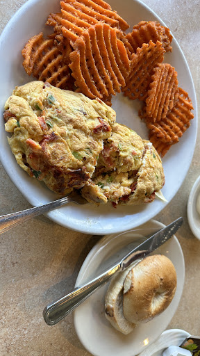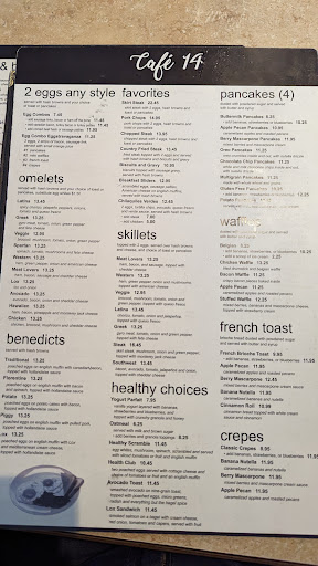 Read moreCute breakfast spot. Mostly smaller 2-4 person booths, but some larger tables in the back. There isn't a waiting area, so it's best to call ahead or keep to smaller groups. The menu is expansive, with healthy choices listed along with the more standard fare, and additions like a "stuffed waffle" utilizing marscapone cheese along with berries and whipped cream. Missing is a kids' menu, other than a huge pancake stack with Nutella, Oreos, and topped with candy; a deal at $9, but overkill for any kid under, say, 10. The hot chocolate, on the other hand, is served in a mason jar glass with whipped cream and sprinkles, will dazzle even the adults at the table. Service is friendly and attentive, although staff seems to be working in somewhat cramped galleys, swimming upstream against bathroom-bound patrons and bustling busboys. This cafe seems to be a hit beyond their initial plans. Smaller, adult-only parties will revel in the selections. Larger groups with youngsters should pack their patience along with some crayons and coloring books, and enjoy the...