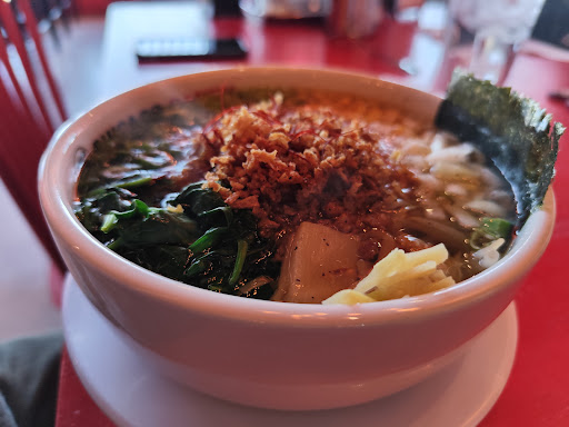 ย ย ย Read moreIf you have never had ramen or a decent bowl of ramen, then this place might be decent. But before even getting to the food the place screams cheap. They are playing free Pandora music with ads, they have wooden chopsticks, metal napkin dispensers youโd see at a cheap truck stop diner and the table I sat at initially was sopping wet. The lady at the front took 10 minutes to come over and take my order even though I was the only one there. I ordered the shrimp wonton ramen and it was a mess of toppings and was 60% bean sprouts mixed in with the noodles. The โwontonsโ were two soggy, flat noodles pressed together with a nickel sized filling in the center. I spent the first 10 minutes piling the bean sprouts into a mound in a separate bowl so I could find the noodles. Even then I had to dig through the mush of soggy onion straws, mushy spinach and raw cut onions to get to the noodles and broth. Trust me when I say you can find MUCH better ramen...