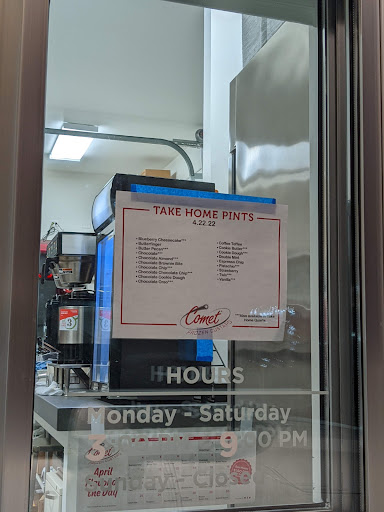 When Mom came to live with us when she developed dementia, I wanted to bring her as much joy as possible. Comet filled that dream. My Mom could devour their turtle sundae in just a few blocks - she would inhale it before we returned home. Also, Comet has been nice enough to put aside pints of plain coffee custard. I will notice when they are making a coffee โ and just ask if they can reserve for me. Their vanilla and chocolate are Heaven too. They also make a wonderful Butter Brickle (difficult to find these days). Their staff is very courteous...