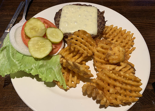 Staff is great - personable, busy and attentive. Just about all dishes have option of fries, tater-tots, waffle fries or fruit. This is regular stop for our company, lunch & dinner (construction does not run well on EMPTY or no sleep - have to go to office or home for sleep 😴 ). Bar is well stocked and balanced mixes with good selection of beer. Food preparation is good, not sloppy and meats are cooked thoroughly and to order.