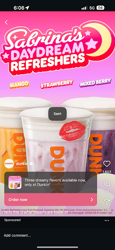 Read moreI decided to come here instead of Starbucks to get the free Sabrina Carpenter cup. The ad advertises ANY Daydream drink. So I ordered mixed berry. When I got to the window and asked for the cup the worker was confused so she asked her manager and he told her now the strawberry got the cup. I proceeded to show the add that said ANY daydream refresher. She then spoke Spanish into her headset and I replied to her in Spanish and she was stunned I understood. The manager then came and told me only strawberry is Sabrina’s Daydream Refresher. Didn’t even bother to look at the ad. I just smiled and said okay thanks. I left with an icky feeling so I contacted Dunkin and they said they would correct it.