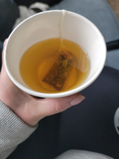 Once we actually received our order, we were missing one tea, so we waited again for the second... Only to walk out with two, what would be best described as small hot waters with single tea bags that are peach flavor and happen to make the water a yellow/orange. They aren't even ginger or turmeric?!