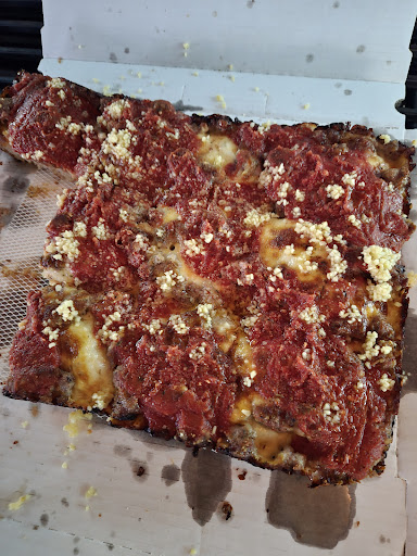 Read moreGREAT DETROIT STYLE PIZZA! In case you're not familiar, Detroit-style pizza is a thick, rectangular, deep-dish pizza known for its crispy, caramelized cheese edges, light and airy crust, and a “sauce-on-top” layout. The pizza is rectangular, not round. Baked in well-oiled, high-sided steel pans (originally auto parts trays in the 40's when it was invented I learned). The crust is thick but fluffy—like focaccia—crispy on the bottom and edges due to oil frying the dough during baking. I learned that in Michigan they often use brick cheese, but that mozzarella or a blend is often used outside Michigan. I'm guessing this is a blend....it's very flavorful cheese. Not too salty either...perfectly balanced. The sauce is FRESH (ripened tomatoes you can just taste the homemade elements) I almost forgot my favorite part about the cheese....the cheese is spread edge-to-edge, so it melts down and forms a crispy, almost fried cheese perimeter. SO GREAT!