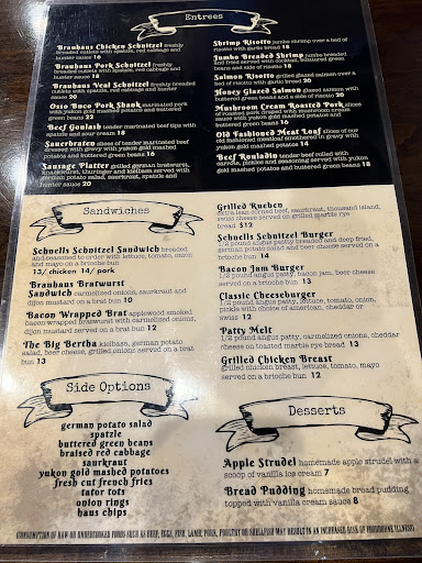 Read moreFinally got to check out Schnell's Brauhaus the evening of Sunday 4/14, for the first time ever! Was in the mood for German food after having some fantastic German food at Kegel's Inn up in West Allis, WI this past Friday night 4/12 before the Luke Combs concert at American Family Field! My friend that recommended Kegel's also recommended Schnell's since she herself is German and grew up having her German grandma's amazing cooking from The Fatherland! Anyway, I ordered $125 of take-out from Schnell's this past evening and left a tip of over 30%! In brief, all the food tasted great (fresh, flavorful, and in large portions)! My order was accurate and ready for pick up in 20 minutes! For appetizers, I ordered the Brat Bite Basket, Curry Wurst with Fries, Bavarian Pretzel, and Cheese Curds! For entrees, I ordered the Veal Schnitzel and Sausage Platter, with sides of German Potato Salad and Buttered Green Beans! For dessert, I ordered the Apple Strudel! Like I said, all the food was absolutely DELICIOUS! I think I might be dining in next time I come in though since I saw that the restaurant had outdoor seating in front plus the inside of the restaurant looked clean, cozy and welcoming (they had tvs behind the bar plus an arcade game section). In addition, there were entire families with kids having a great time both inside and outside of the restaurant! So, looks like I won't have to make the schlep all the way to Wisconsin nor ChIraq the next time I'm craving...