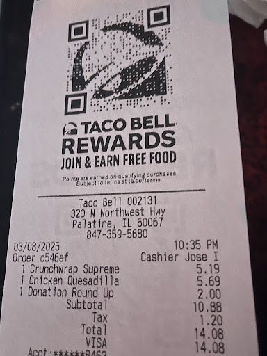 I went here with my friend for dinner before a church event and not only was the food delicious, but we had exceptional customer service! As we were leaving and cleaning up our table, my exhausted friend accidentally threw her car keys in the trash š. We were both kind of freaking out and scrambling through the trash like some crazy people when two employees who were sitting out in the dining area (either on their lunch or having some kind of meeting) saw us. We explained what happened and they said that this actually happens all the time which made my friend feel better about herself š š. Then the female employee told us to hold on one minute and she came back with latex gloves and a second (empty) trash can. She then took out the trash can that had my friend's keys in it, lifted it up and held it above the empty one while we put on the gloves and sorted through the trash. Of course, the keys were at the very bottom of the trash can, but we did find them thanks to the help of this very kind and caring employee! It was such a huge relief and they were both so kind and sympathetic to us that it just made everything better. I hadn't been to a Taco Bell in years, but this was a great place. They helped us immensely and went way out of their way to help us. Such great customer...