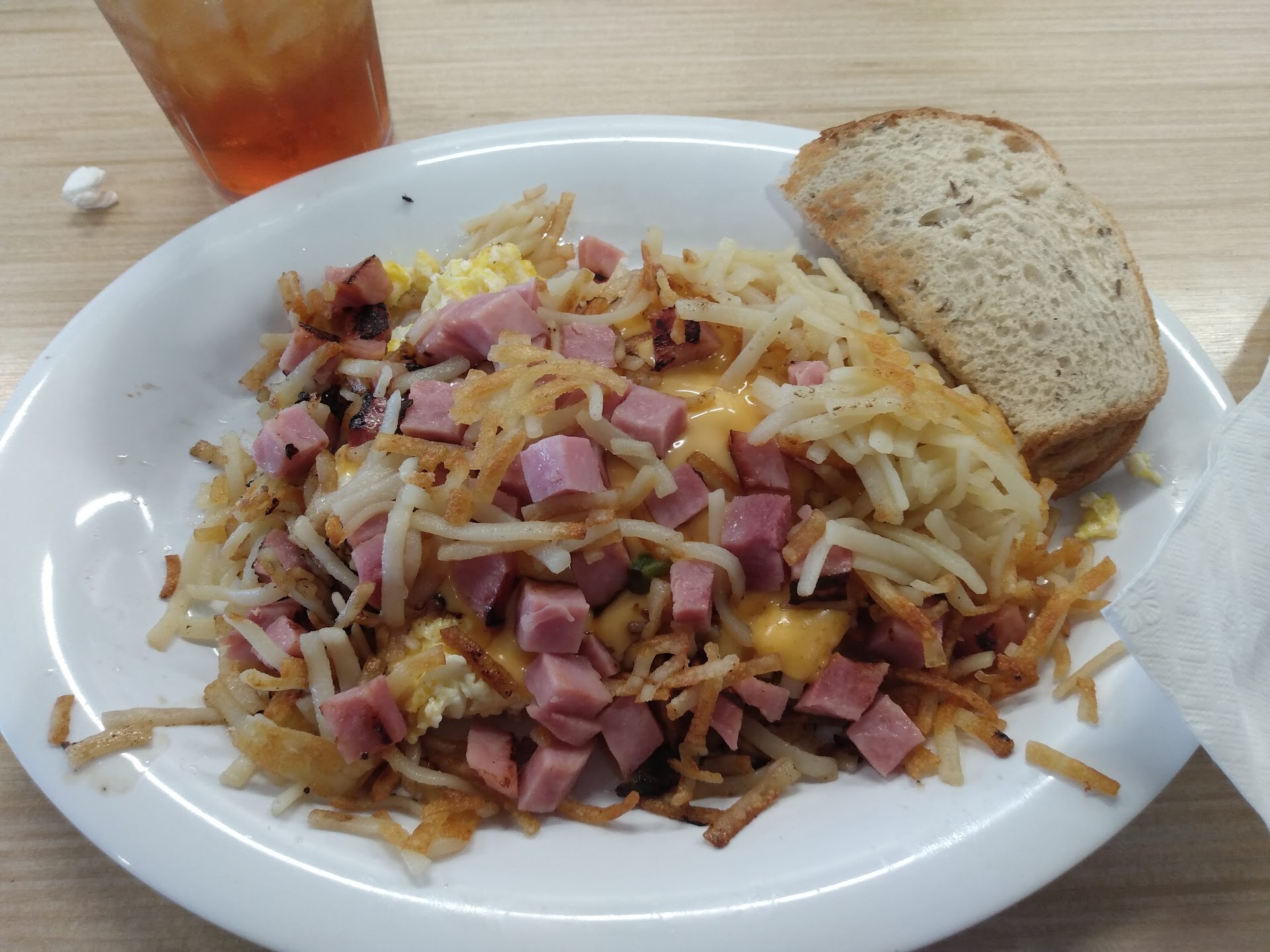 Read moreServer was kind Came in for the $5.99 bowl advertisement on their sign out front, but was advised that it's hardly any food and usually only old people eat off "that" menu. They were out of sausage gravy. They were out of grits. They were out of fruit. Asked for cheddar cheese on an omlette but got american... Didn't send back because I didn't want to wait for them to remake my food. Trash all over the floor $1 upcharge on each 2 egg item "because of the price of eggs right now" They had a small sticker on the FRONT of the menu, but not near any egg-based menu items. They said there was a sign on the front door that said it too. I believe the professional thing to do would be to give customers the heads up when they order an egg based meal, but they believe the sticker is sufficient. Pretty sure that if you're charging $12 for an omlette, you should be able to eat the temporary price increase of eggs.