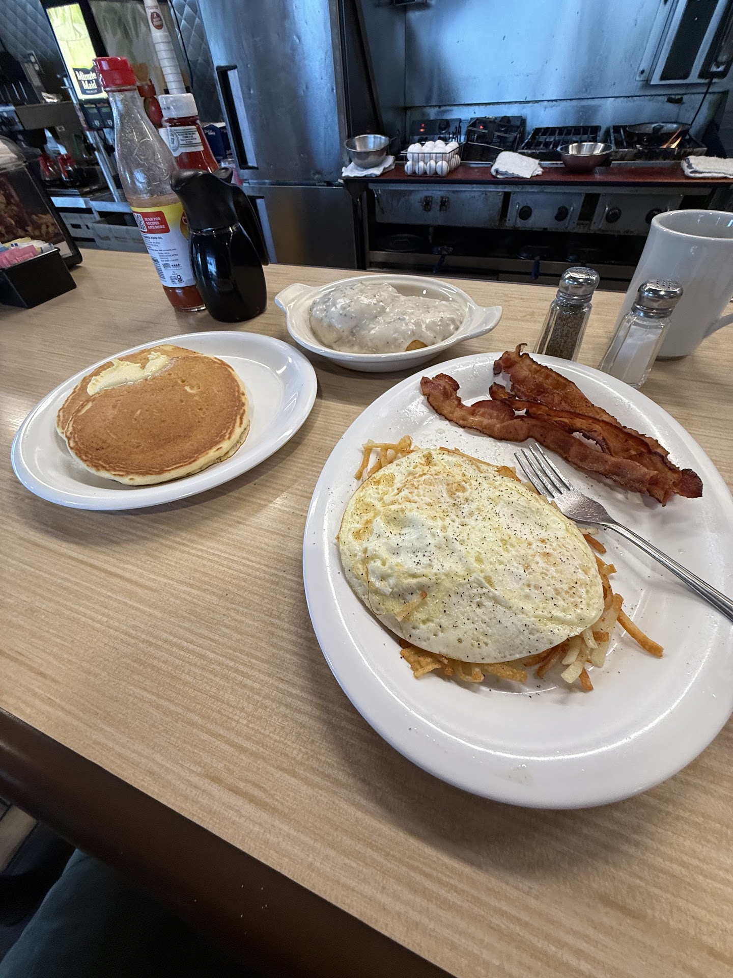 Read moreBeen going there and getting the same thing forever. The MVP Breakfast Platter. Will not be going back again. On the menu it says that it come with a waffle or pancakes. Have always got 2 pancakes. Today I got a pancake about 4" around and was super flat more like a crepe. When I asked the waitress what was up with the tiny single pancake. She said that the portions have changed. ? Was kind of miffed because when I showed them on the menu that it said pancakes (plural) she said she knew nothing about it. The cook was by the register (no manager at the store) he said that was bull that we were suppose to only get one pancake. Okay here is the rub. Apparently on their menu it says pancakes on their website it says pancake. But the fact still remains I don't think they meant a 4" slightly larger than silver dollar pancake. Not going back. The whole thing ruined my breakfast. I have always prided myself on being a good tipper but I didn't leave a tip. I know its not the waitresses fault but she didn't handle the situation well at all. Was an embarrassing situation for all. Not why you go out to eat. It is suppose to be fun! Made me feel like I was trying to cheat to get more food. Well you've lost a lot of customers on this one...