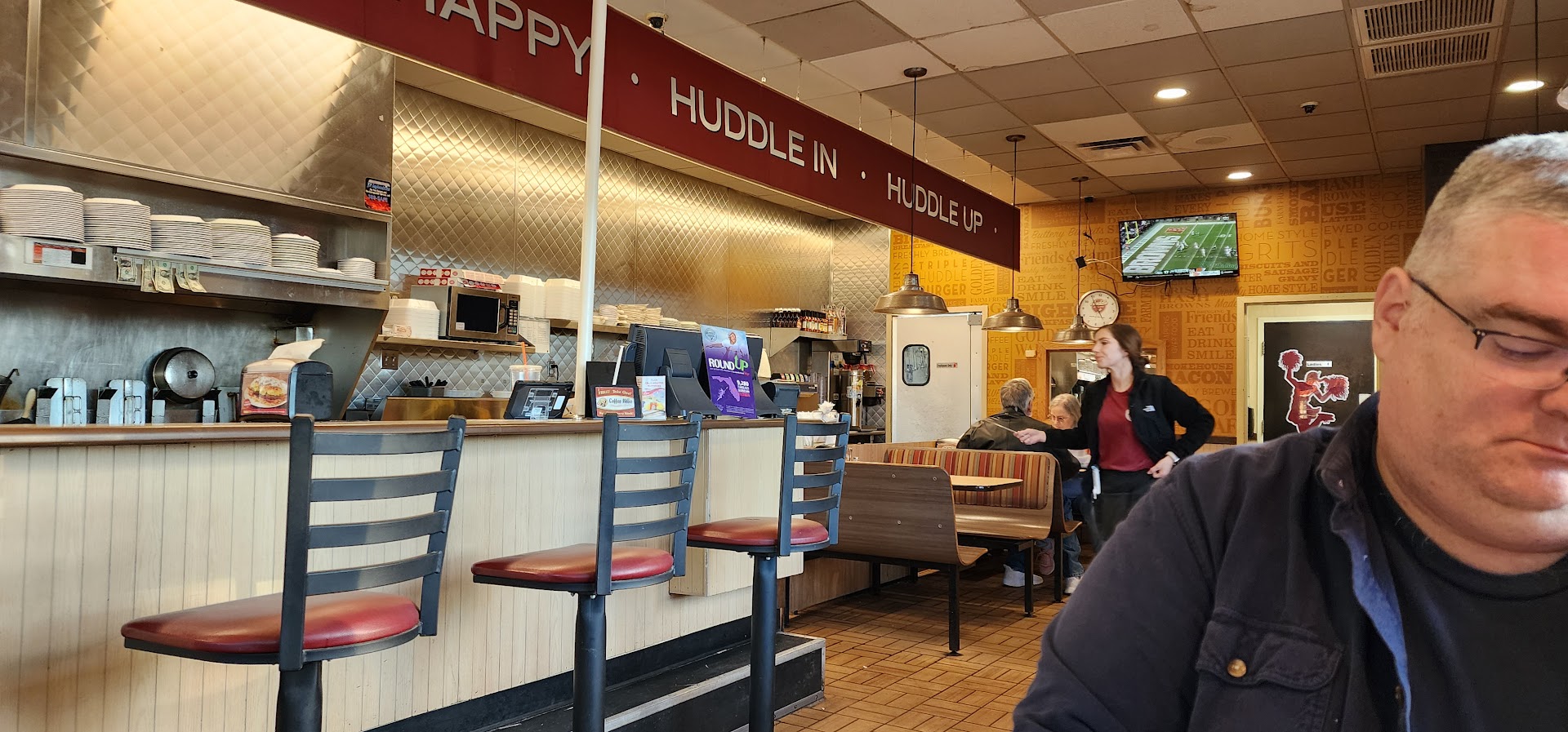Well usually I have a good experience at huddle house when I go but this time it was just awful. The tables that were marked cleaned and ready for use we're dirty, then waited for awhile to just get someone to come take it drink order. Kind I'm mind there were about 6 tables occupied in the whole place. So not busy at all. Then we finally get to order and the waitress had to keep coming back cause the are out of pretty much everything we wanted. So I ended up getting a burger and fries and my husband got the country fried steak, his food was ok they had to substitute a few things cause they were out of what they needed to make the country fried steak the most important part the gravy. My burger was just ok and the fried you could not eat cause they were just to greasy, I couldn't even take it home to my dog like I usually do because of the amount of grease. And forget telling the wait staff anything is wrong with your food cause there more worries about who was going to take the order of there regular customers. Maybe it was an of day for them or something not sure but when you have epidemic going on and you aren't getting allot of customers in because people just aren't going it to eat you would think when they do get customers they would make sure you have a great dining experience. I don't care if your during in a dive joint or a five star restaurants let's make sure everyone is enjoying were they decided to eat instead of making the experience uncomfortable. But will I give them another chance you bet because like I said it might just have been an off day. Everyone deserves second...