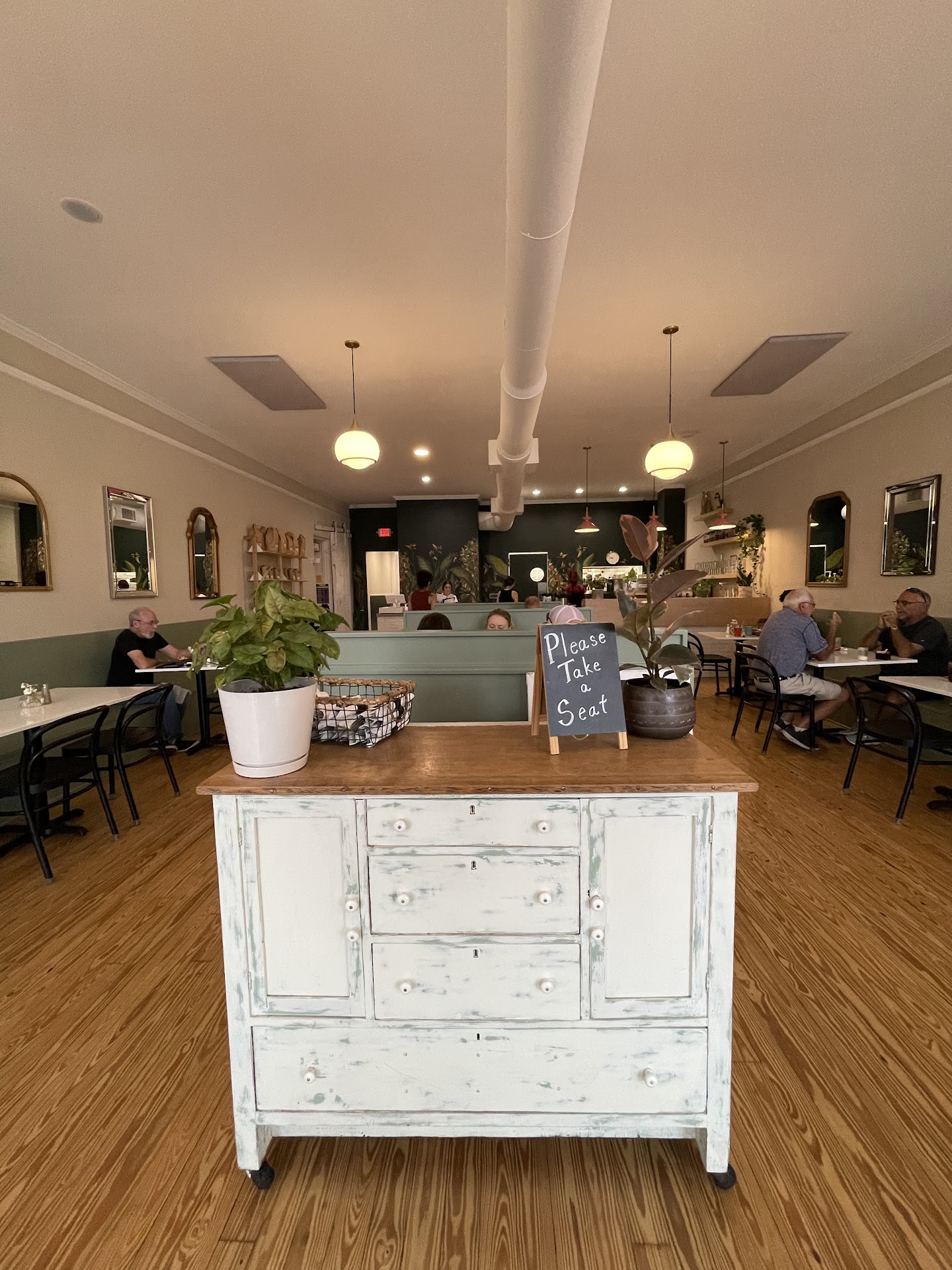 Read moreWe usually have breakfast here on the weekends and the food is excellent. They will adjust ingredients to a dish to suit your taste if possible. I was able to go to lunch here for the first time the other day and I was not disappointed. I had a Ruben sandwich that was one of the best I've ever had! The service is very good. The staff are always friendly and welcoming. The decor is very simple. White walls with 4 large unique mirrors on each side and a hand painted accent wall at the back gives it a clean streamlined look with depth and space. And the hardwood floor gives it warmth. At first glance the prices seem a touch high until you get your plate. The portions are generous and the food is fresh... I leave full and a to-go box in my hand! You definitely get what you pay for. The seating is limited and on the weekends late morning there's usually a wait, but it's worth waiting for. The staff do not rush you and your welcome to enjoy your meal at your leisure. (Small rant: As a patron I have waited for a table and have watched others wait while I was seated. If this happens... Be kind. Eat, enjoy and leave the table so someone else may enjoy an excellent meal as well. I've seen other people that have eaten, paid and sat talking with their to-go boxes holding up tables while others wait. That's rude. Go a few blocks down to the river and sit on a park bench to visit....