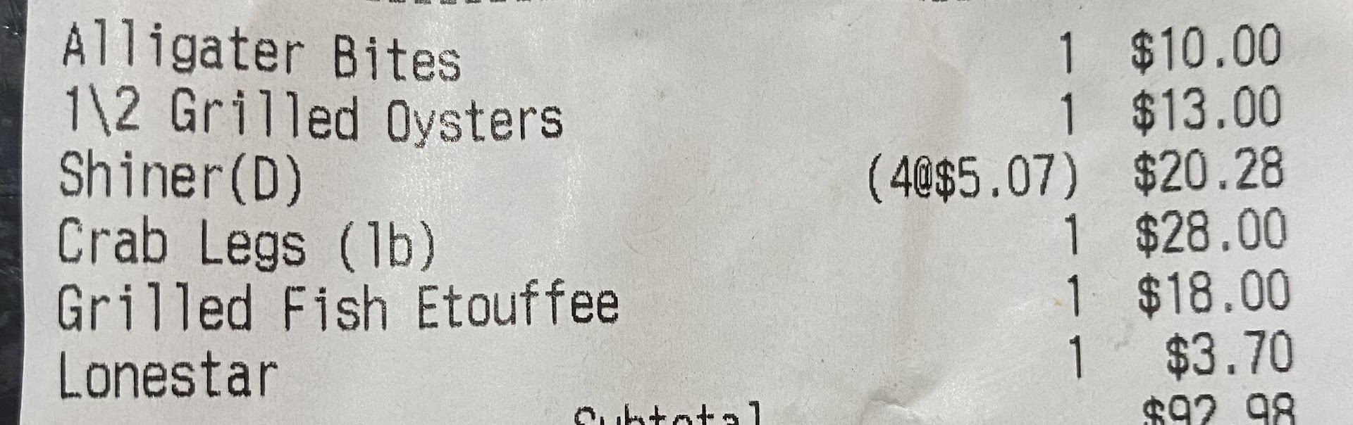 I don’t know if it’s because we are from Houston, but for us a seafood boil is way different than what was offered here. The crab and the shrimp were just literally boiled. Didn’t taste like anything or have any sauce. It’s not that they were bad they were plain and we’re not used to that. Also, we really wanted crawfish but our server, who was very nice by the way, said it was out of season so they didn’t have any. Again, we’re from Houston so it was strange to hear they’re out of season when I know here in Houston places are still serving them.