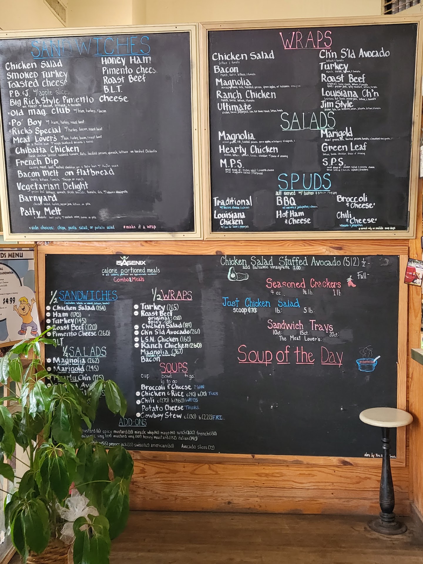 Read morePlease follow us on Facebook and Instagram at SNDTravels. Not much to see or do downtown Palestine but this is a nice stop for lunch. Sandwiches, wraps, salads and baked potatoes. Diane and I had chicken salad that included apples and pecans. Very good mixture so that it wasn't too sweet or to juicy. Diane had croissant and I had a half sandwich on wheat and a half avocado stuffed with chicken salad. Good combination with the avocado. Dad had a roasted turkey sandwich and was very pleased with the turkey. Mom had a BBQ stuffed 1/2 baked potato. I don't know how you could get a whole one on the plate. Mom loved it and really enjoyed the BBQ flavor. They also had some seasoned crackers that were done in store and were exceptional. Overall it's a really good sandwich shop combined with a antique store. Friendly service. Overall two thumbs up....
