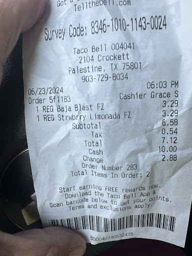 I go Taco Bell regularly it used to be good friendly, but they have this girl who works the window who will argue with you and argue with you and force you to take food or drinks that you don’t want last week I just end up taking the food because I was so mad I didn’t wanna do something I shouldn’t today which is Sunday. She stood right there went and argued with me. Over some drinks I ordered she kept telling me I did not have a Baja blast. Then she close the window on me? Who wants to go somewhere like that in the window or anywhere? I have my receipt to prove that I got a Baja blast that she want to argue about whether simple or majorshe can argue. Luckily, today, I’m assuming a sweet little manager was there just a Sweet she could be She had an earphone on. She gave me the Baja blast like it was not a problem . if More people like her work there Taco Bell will make it because she just did it so quickly like it was like The right thing to do at the window ..there a lot of people not only me that doesn’t even want to go back to Taco Bell. That’s sad. I should’ve posed to the receipt last time it was like a $40 order she argued with me and a line of cars .. so I left with the wrong food more if I’m not mistaken it was more than 40.00 and all she want to do was argue like I said thanks for the manager today I’m sure that’s who that was today with the headpiece on they gave me the Baja blast that I actually paid for and then told me to keep the other one, but they do need to move the other one around i’m speaking to the...