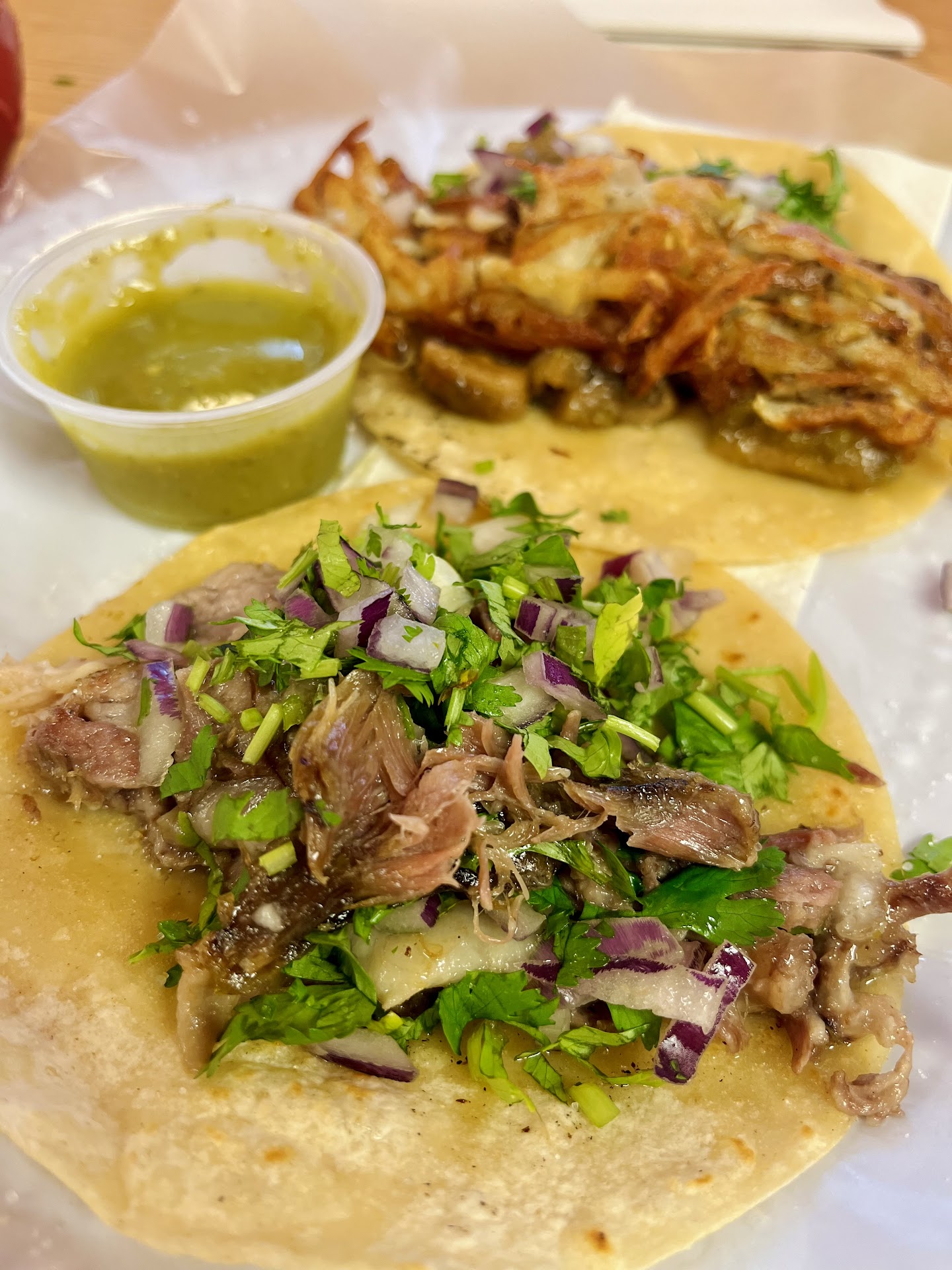 Y’all. When I tell you these tacos made me laugh like a little kid. Like, when you take a bite of something and it tastes so good you start giggling to yourself because you’re just so happy. I lived in San Antonio for several years and have tried several local places here, but this meal felt like home. The chicharron was full of flavor and not chewy. Instead of using soft diced papas there were crispy and salty hash browns which complimented the soft and fatty pork. Then the carnitas…my god. So tender, so fatty, so full of flavor followed by the freshness of the onion and cilantro all wrapped up in the softest corn tortillas. The salsa verde served with it was a perfect heat and added great brightness to the meat that was just incredible. Even the coffee was good.