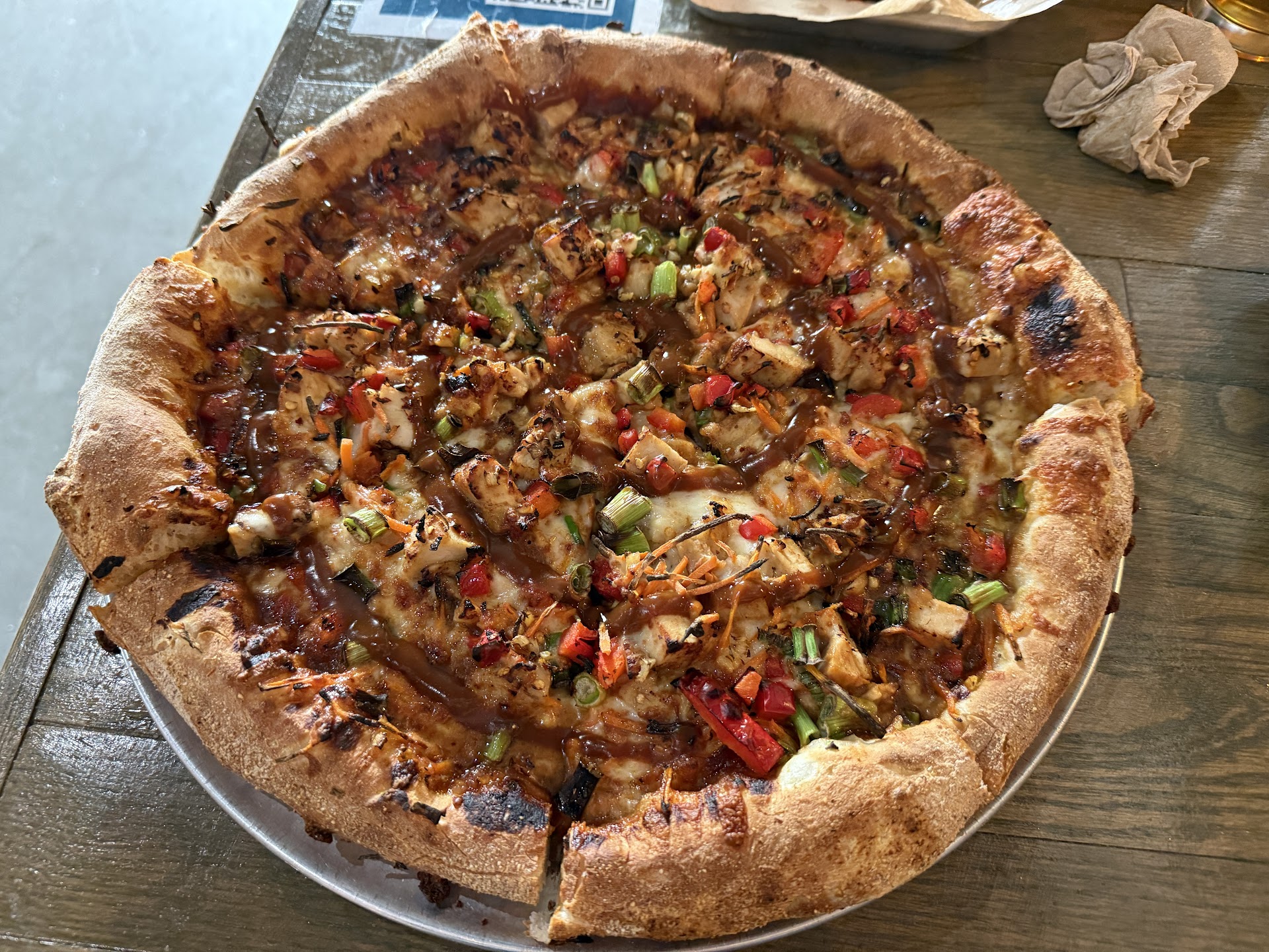 Read moreWe went in April for my birthday & it was phenomenal. It was super busy but ran smooth. Had the garlic parm fries, bbq chicken & Thai pizzas. Im not a huge fry girl but I've been craving those fries since we went- they were crispy & delicious. We went again with some friends last night. It was steady but not crazy busy like it was the first time. The food came out quickly but whoever was cooking last night was very heavy handed on the sauces. Had the garlic parm fries again - so much sauce they were soggy. The BBQ chicken pizza was drowning in bbq sauce. The pesto pizza had so much balsamic swirl that it was all you could smell & taste- very off putting. I even tried to sop it up with napkins. Sometimes less is more. We did sit outside again as inside is so loud you can not have a conversation. The views outside are amazing! The peach wine slushie was the highlight tonight- sweet, light & refreshing for a hot afternoon. Over all, its a great, fun place with many choices for food & drink. Lots of area to run & play for the kids, games to play for everyone & a good place to relax & enjoy the views. We will come back...