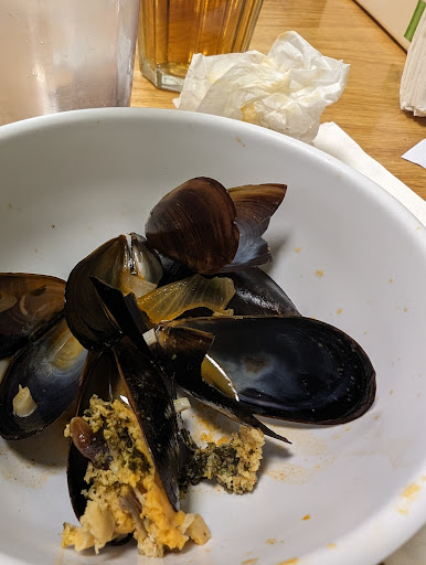 Notice the closed & broken mussel shells in the photo, plus chewed out meat. Live mussels open up when heated but not dead ones. Whoever cook this realized this & decided to crack open the shell manually to cover his tracks. I taste and ate two, now I know why it tasted dodgy and regret swallowing it. I hope I don't get SICK from this!