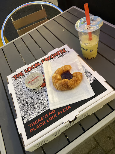Read moreThis place, formerly Kudo Society Cafe, was renamed Pizza X Cafe by new owners about three months ago. I found it when I used my app to search for pour-overs. They serve pizza, pastries, ice cream, and of course, drinks. I can only review their drinks, as we ordered a blend of loose-leaf teas—blueberry and hibiscus—and an iced Americano. Their alternative milk options include oat and almond milk. For the iced tea, they generously provided a heaping tablespoon each of blueberry and hibiscus. Their tea leaves are kosher, and both the selection and the drinks themselves were truly impressive.
