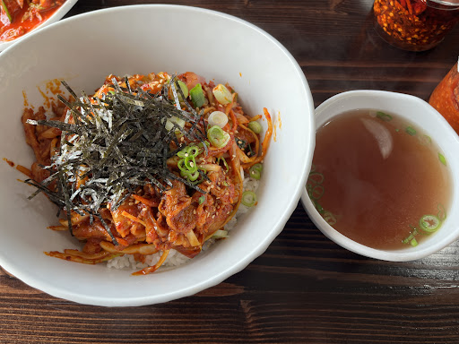 The side dishes—kimchi and tofu—were incredibly flavorful. We also tried the dumplings, which were perfectly crispy and left us craving more. Of course, we had to try the classic pho and spicy pork over rice, and both were absolutely delicious, with generous portions, especially the meat.