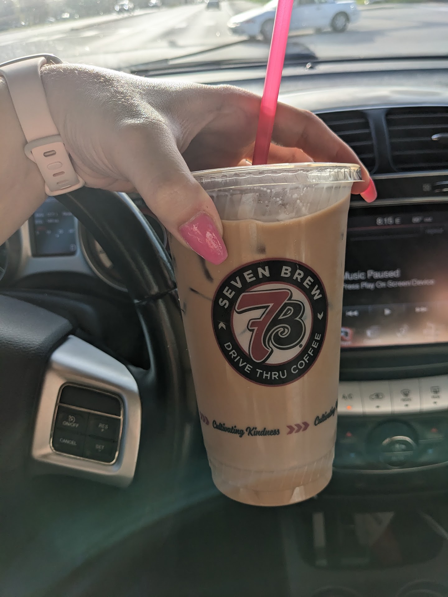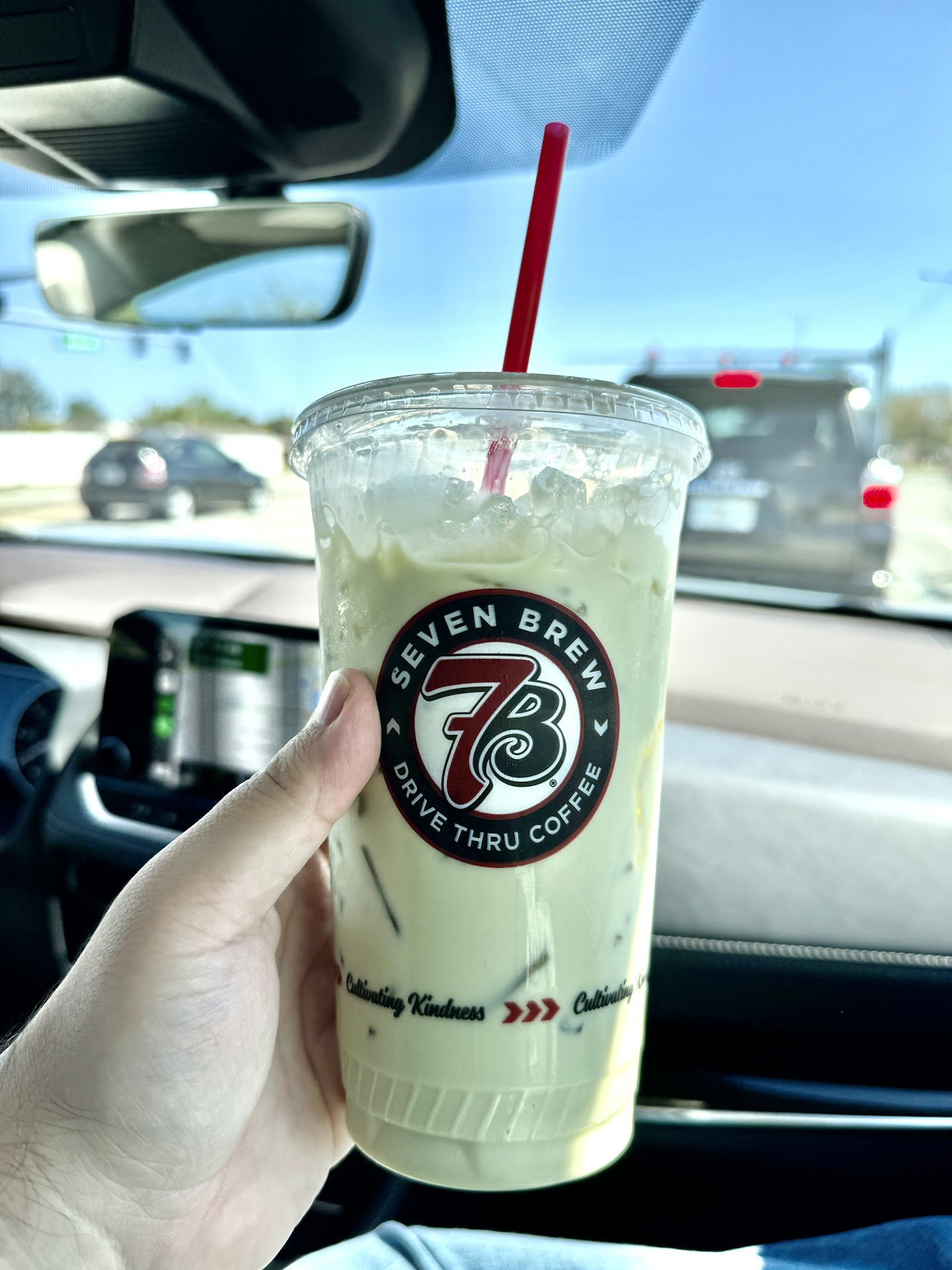 Read moreThis is a new place for me as I usually hit Starbucks for fancy coffee. We decided to take advantage of it one day while heading home and have returned once. I ordered an iced white chocolate mocha with added pumpkin ( substituted caramel for the pumpkin on 2nd visit. Enjoyed the pumpkin more), hubby got white chocolate mocha chiller which is 7 Brew version of a frappacino. I thought the coffee had a really good flavor and found that it was better than the similar drink at Starbucks. 7 Brew makes theirs with white chocolate syrup plus milk chocolate syrup which gives it much more chocolate flavor than the Starbucks white chocolate mocha syrup. The chiller consistency is grainier and not as smooth as the Starbucks frappacino which was a negative, but still very tasty. Be prepared to wait a bit as there is no app to order ahead. Your order is taken by an employee outside in one of the 2 lanes and then is made up. Once your order is taken, it's a similar wait to walking into any place and waiting for your to be made. It can add up if the drive through is packed. The service has been great on my 2 visits so far. Order takers very friendly and no issues with getting it right.