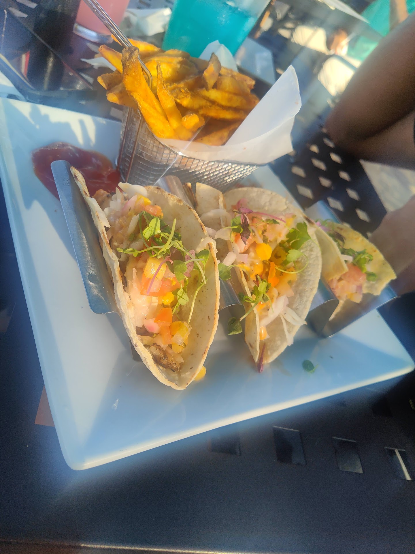 Read moreWe hadn’t visited this restaurant since it was Paisanos, many years ago. Since we enjoyed it then, we decided to try it with the new name, “Lazy Turtle”. We walked in around dinner time on a Tuesday evening, it was not busy at all. The hostess said to sit anywhere, so we began to sit at a table in the first dining room but were then told not to sit in that space, so we sat in the bar area dining room at a window seat with a great view of the river. We were welcomed promptly and our drink orders were taken. We requested water first, one with lemon and the other without. Both of our waters had a lemon in it, not a big deal but was just expecting a little more attention to detail since there was no one else seated and it looked like a really nice place. I ordered the three fish tacos with mixed vegetables and my wife ordered the Romano Chicken with mixed vegetables and Caesar salad (to replace the mashed potatoes). Our food took longer than expected since no one else was in the restaurant. Once it arrived, I received French Fries instead of the mixed vegetables, my wife received the mashed potatoes she didn’t want. Here is where it gets weird. We mentioned the mix up with our waitress, she acknowledged that she wrote it down correctly so the kitchen must have messed it up, however she never corrected it. She also didn’t attempt to discount the meal or anything like that. At any rate, my tacos were pretty good, out of the three, one of them seemed to be much seasoned differently (spicier) than the other two. Although I didn’t order the fries, they were really good. My wife was less than impressed with her dish. She said that the parmesan chicken was tasteless, unseasoned, chicken thickly coated in a crispy breading, and barely topped with a weak sauce and tiny bit of cheese. Her vegetables were badly overcooked and mushy. The mashed potatoes she didn’t want, but ate since the other food was not good, were tasty. Our drinks ran dry a couple of times, which again I thought was odd since it wasn’t busy. All in all, it was an o.k. visit, nothing that would draw...