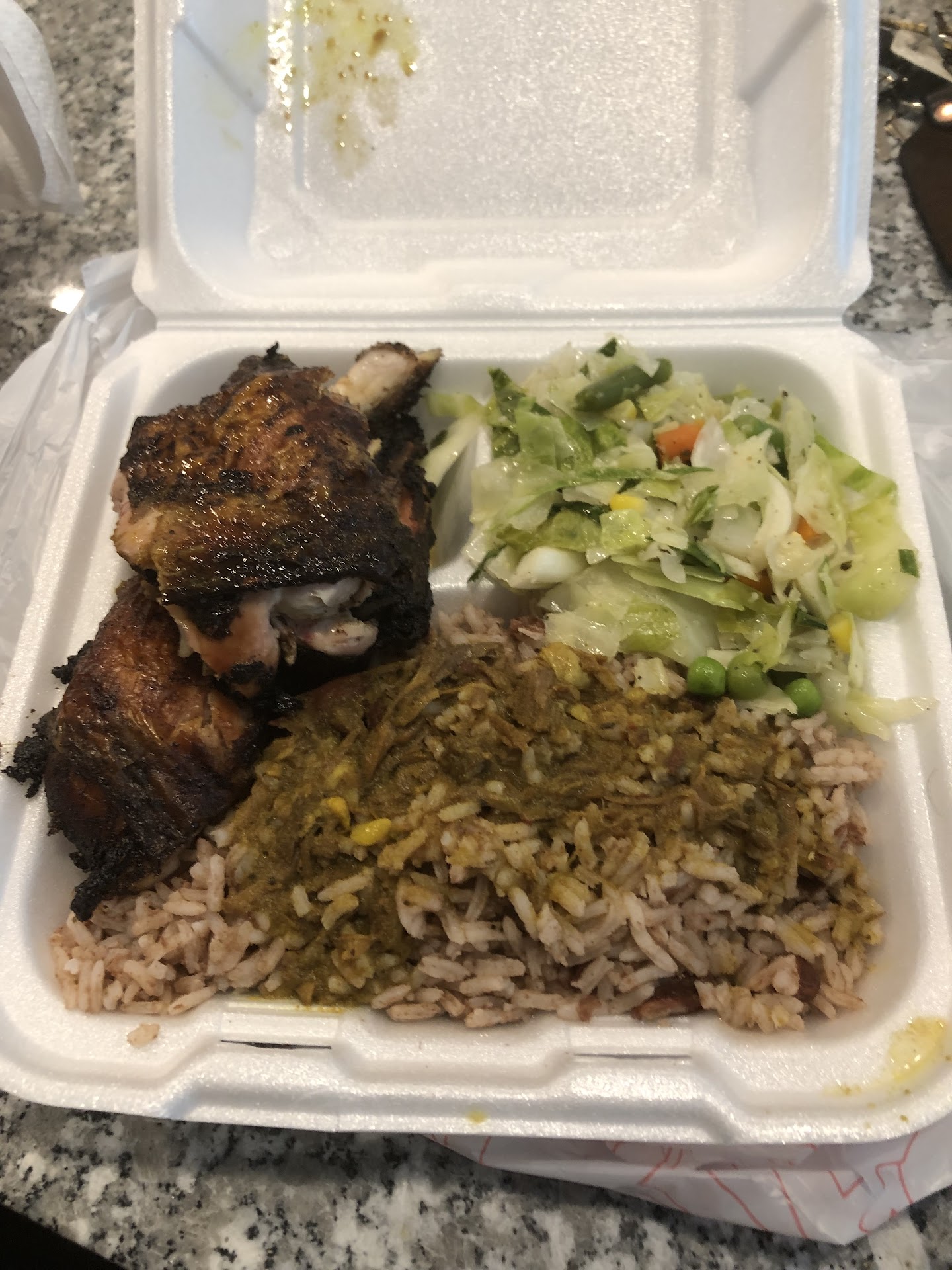 First time visit! Scanning Google Maps, I came across this restaurant and the reviews and pictures inspired me to try them out. The place is small and it's strictly take-out. I tried the Jerk Chicken. The chicken was fine, probably not the freshest (meaning cooked that day) but was still good. I was informed that they didn't have any vegetables ready at the time so she offered me a little more rice and beans. She also offered up some gravy for the rice and beans which was fine but wished she had put on a little more because I had a lot of rice and beans and it was a lil dry still. I also didn't get any plantains! I just had chicken and rice and beans! I'll hesitate to go back but if I really had the urge for some island food then I might give them a second try, which I should in order to see if a second try yields a better experience. Not the best first experience but I'll give them another try eventually, just don't know when, and hope for...