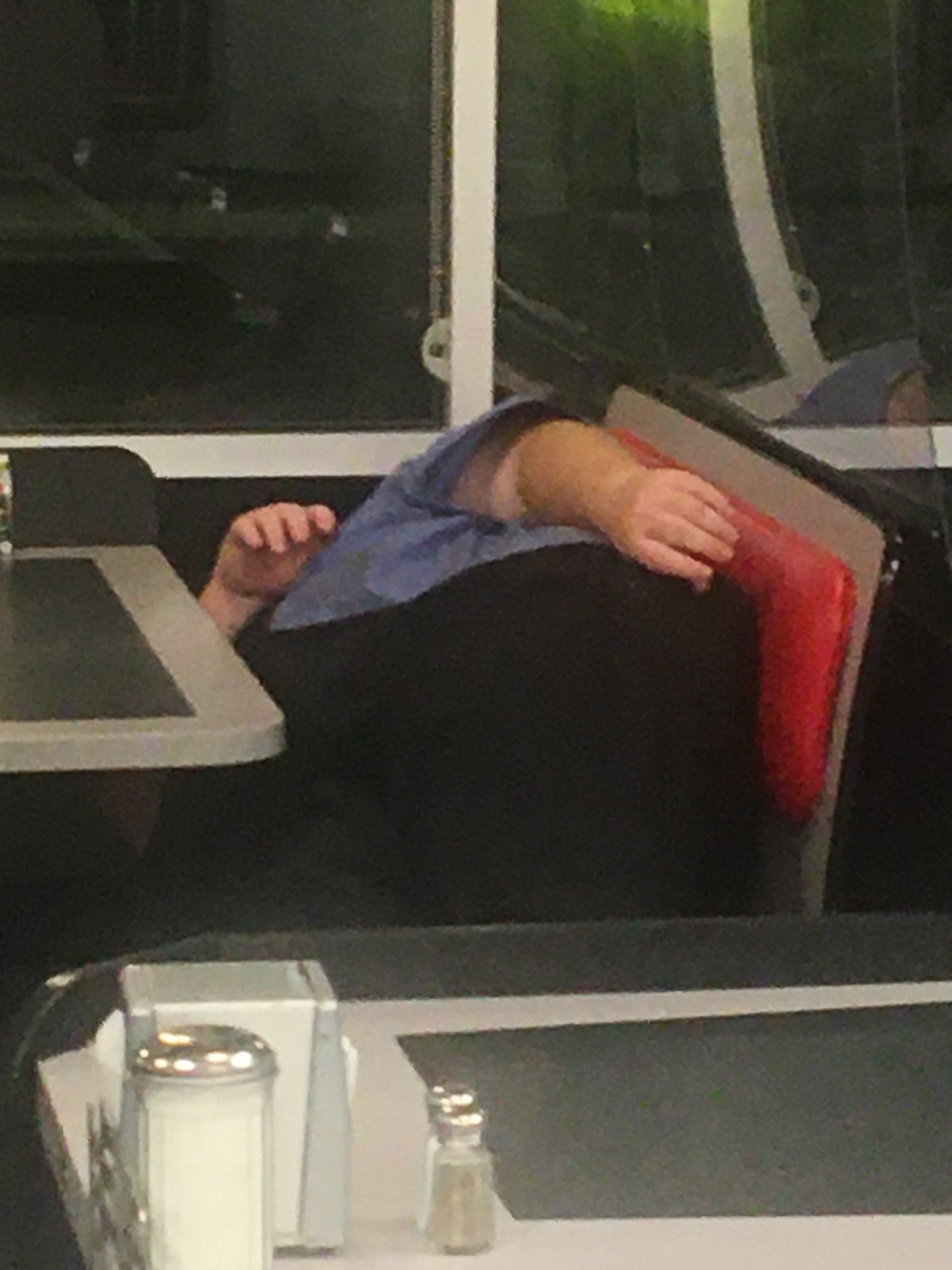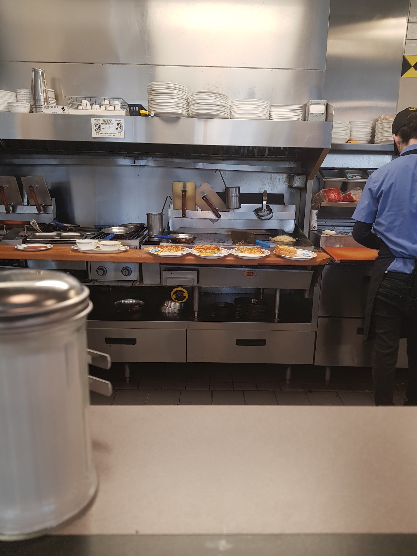 There were five employees behind the counter, all of whom were talking and joking around and one was on their personal phone having a conversation unrelated to official waffle business. Beyond being told to take a seat and wait for a table our group of three was not acknowledged, and there was no effort made to make a table even remotely clean enough for us to sit.