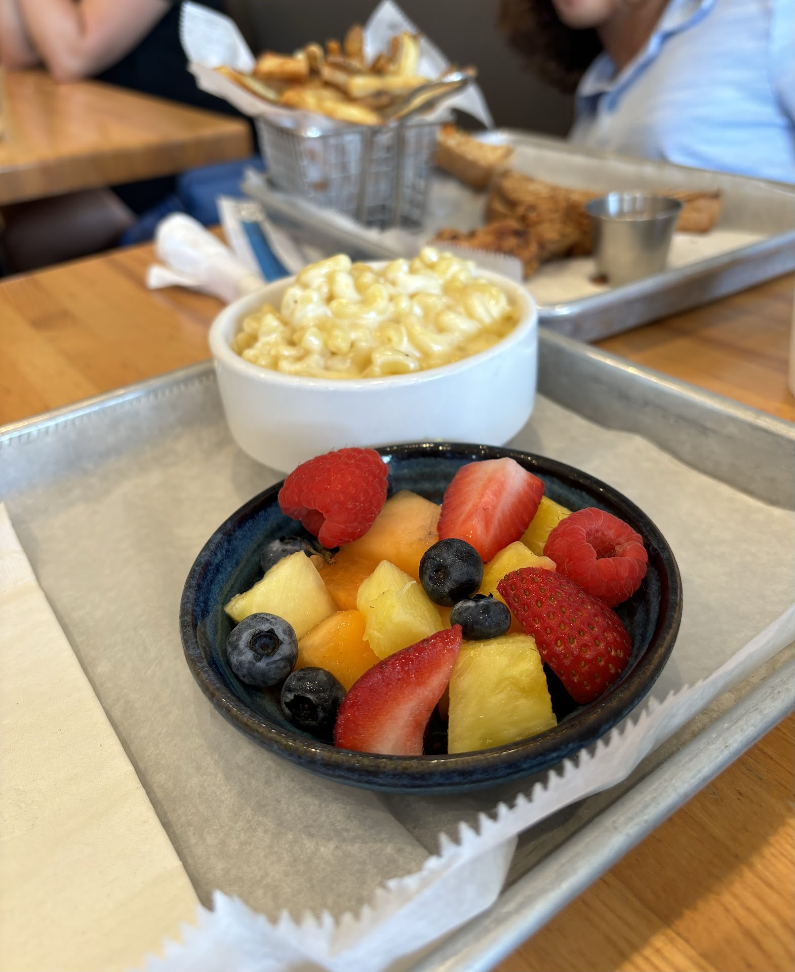 More good news! In addition to serving good food, the prices of the food, wine and baked goods are very reasonable. Marty and I absolutely love the Meat Quiche and the Tomato soup. The two of them go together great and for a total price of only $10. On our first visit we loved "The Farmer" - a lightly fried chicken breast sandwich bursting with flavors. Today I had the Truffle Mac ’n Cheese ($10 and $2 for Truffles) and it is rich and I mean rich and filling and ever so creamy and delicious. Marty was intrigued with the fried chicken tacos but we didn’t want tacos so they gladly served the crispy fried chicken with many flavored accompaniments on fresh lettuce. For our friends who want a healthier lunch they offer lots of salads and they make their own dressing in house. A good friend of our swears by the “Clacker” - their version of an all in chicken salad. They have a full menu and each day have a separate "daily specials" menu as well.