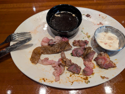 Then came the main event, the prime rib. This was honestly one of the worst cuts of meat I've ever had. It was so full of gristle. I was paying $41 for half a steak. The little bit of edible meat that was left actually tasted decent, but it was hard to care. When I mentioned the gristle to the server, she just gave me a look and asked, “What do you want to do about it?” Like, seriously? Of course I wanted to do something about it, why else would I say anything?