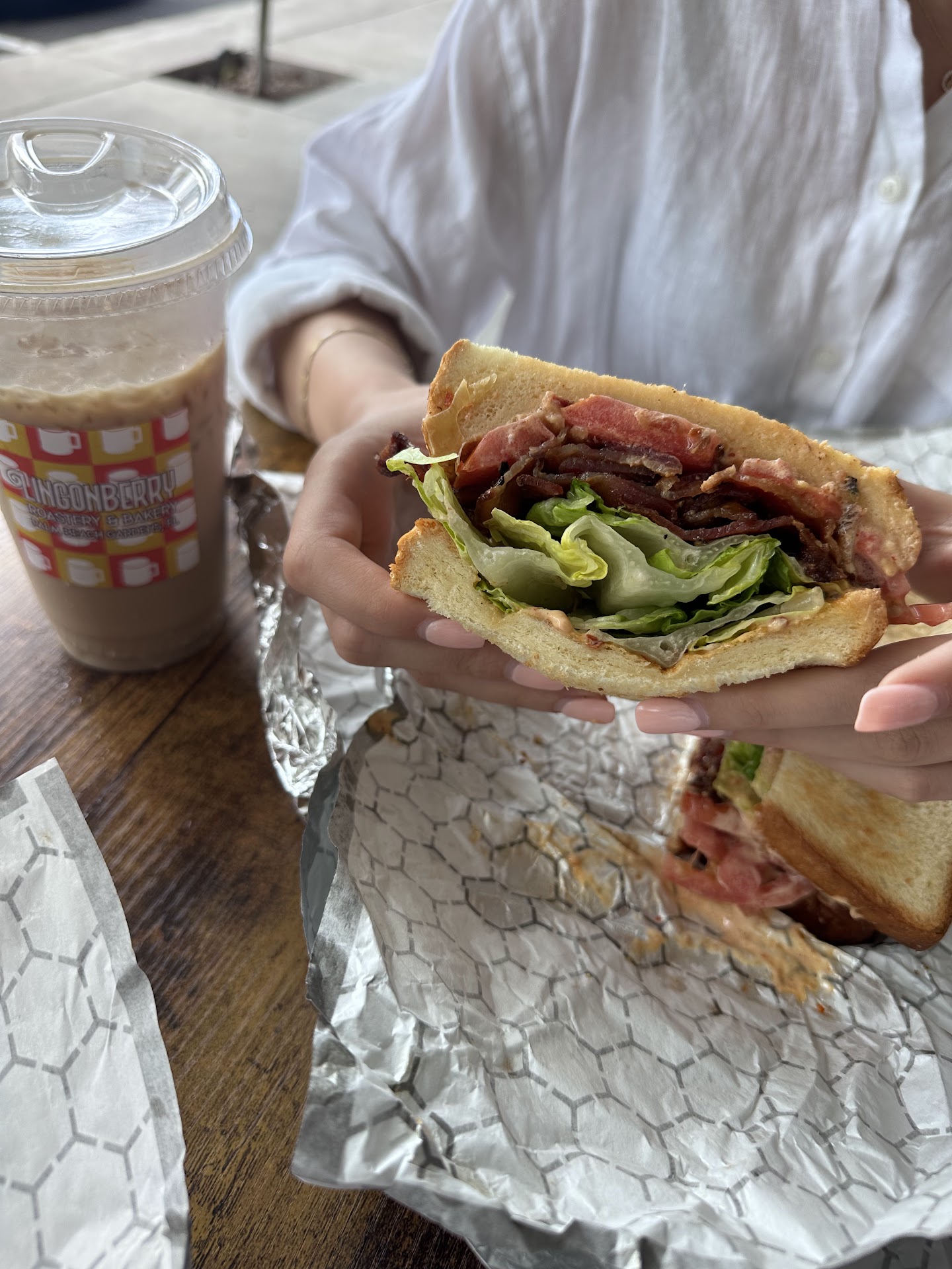 20-30min passed still was not any space indoor or outdoors. the guy who delivered our drink said that we couldnāt sit in front the other restaurant so we didnāt have a choice. We ate in the car at before moving on to a more spacious cafe downtown and got our coffees there.