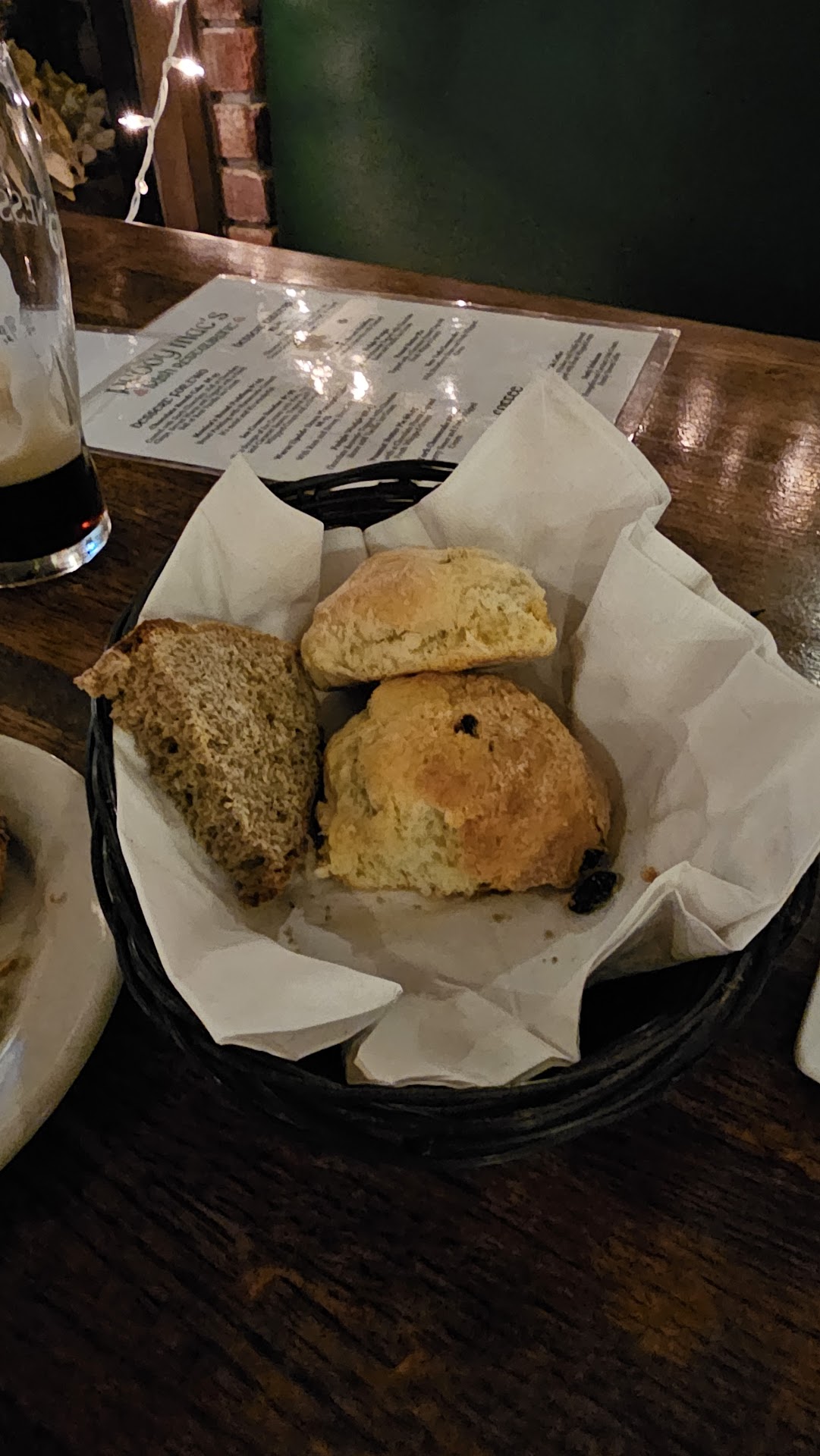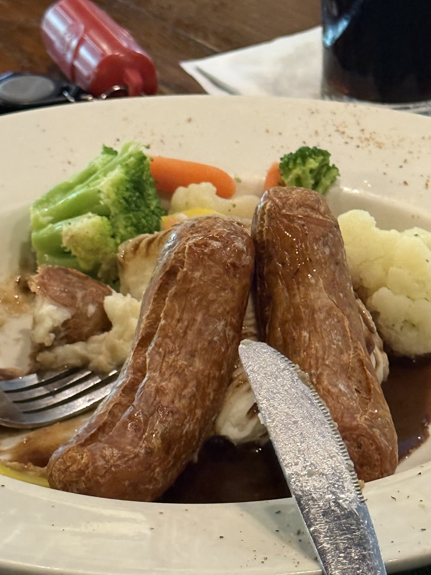 There was nothing wrong with the service or the establishment itself (it was clean, well maintained, and inviting) but the food was disappointing, sadly. The complimentary soda bread muffins were good, slightly sweet with raisins added, but if you expect standard American muffin or bread texture, you're not going to get it. This is soda bread. It's dry and crumbly. That's what soda bread does, so I give points for well made soda bread. We started with the pint of sausages which were tasty (they're more of the mild Irish/English style of sausage which is in keeping with the Irish pub theme, but don't go in expecting an Italian sausage which is all shouty, 'look at me! I'm full of basil and oregano and thyme!' In the UK, sausages are subtle and more reserved. Think Queen Elizabeth instead of a red Ferrari.) I ran into my first problem with the food with the hot mustard that came with them. It was just too much horseradish, and we LIKE horseradish. After that, when our entrees arrived, the problems compounded with one simple element that was lacking in every dish... salt. There was just NO SALT. Nothing was seasoned. Not the chicken pot pie (which had it's own set of extra problems that I'll address next), not the shepherd's pie, not the mashed potatoes on the bangers and mash, not even the hamburger or the FRIES. Not even the fries? You can't make fries without salt. Seriously. A fry without salt is just a sad potato. You have to season your food. Gordon Ramsay would flay a chef alive if they failed to season their food. Don't be afraid of a little salt and some fresh ground pepper, it won't hurt anyone. I promise. Lastly, the chicken pot pie. Lovely presentation with a big fluffy puff pastry placed on top as the crust, but underneath? No salt. No pepper. And huge chunks of carrots and potatoes far larger than 'bite sized' and undercooked. I mean, actually crunchy on the inside. Not to mention a lack of mushrooms... I say 'lack' because mushroom stems don't count. No caps = No mushrooms. Having been in the food business for 39 years, I know restaurants, customer service, and food. There was nothing offensive about this restaurant or its food. The problem was, it was frankly bland and in some ways, poorly executed. I really wanted to be blown away by the food, and sadly, we weren't. This will be my only chance to dine here, as I'm in from out of town, and I'm sorry that I can't give an outstanding review. I hope the owner reads this and takes it as it is meant to be taken; a well meaning and honest critique of the food that is the heart of his business and that he takes the time to improve the recipes. People WANT outstanding, unique food that they can enjoy over and over. Do that, and they will throw their money at you...