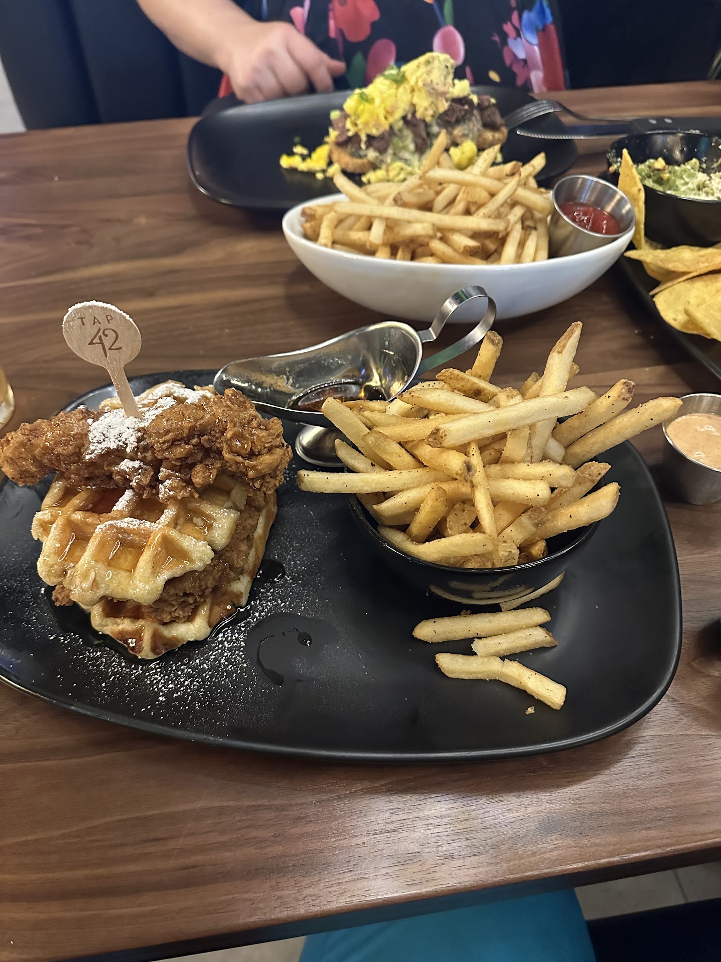 Taps 42 Craft Kitchen & Bar offers a vibrant and enjoyable dining experience. From the moment we entered, the lively and bustling atmosphere set a positive tone for our Saturday evening dinner with a party of five. While the restaurant was clearly busy, the noise level remained conducive to comfortable conversation, a welcome balance often hard to find in popular establishments. Our server deserves particular commendation. Her attentiveness and timing were impeccable. She seemed to possess an innate sense of when to check in, providing excellent service without being intrusive. Considering the restaurant's bustling environment, her ability to manage our table so efficiently was truly impressive. The majority of our party thoroughly enjoyed their meals. Those who opted for red meat dishes expressed complete satisfaction, praising the quality and preparation. However, we did encounter a couple of issues with the grilled dishes. The Grilled Chicken Avocado Salad fell short of expectations. The chicken lacked the characteristic char and flavor of grilling, tasting more akin to boiled chicken. This absence of color and taste was disappointing. Similarly, the Cajun Grilled Mahi Sandwich was reported to be excessively dry. One of our guests had enjoyed a more flavorful and moist grilled mahi at another restaurant the previous day, making the contrast quite noticeable. Despite these shortcomings with the grilled chicken and mahi, the overall experience at Taps 42 was positive. The excellent service, coupled with the lively yet conversation-friendly atmosphere, created a pleasant dining environment. We would still recommend Taps 42 to others, albeit with a suggestion to perhaps explore the non-grilled menu options. Our experience suggests that the kitchen excels with certain dishes, particularly the red meat selections. While the issues with the grilled items were a point of feedback, they weren't significant enough to overshadow the positive aspects of our visit. We would certainly consider returning to Taps 42 in the future, eager to try other items on their...
