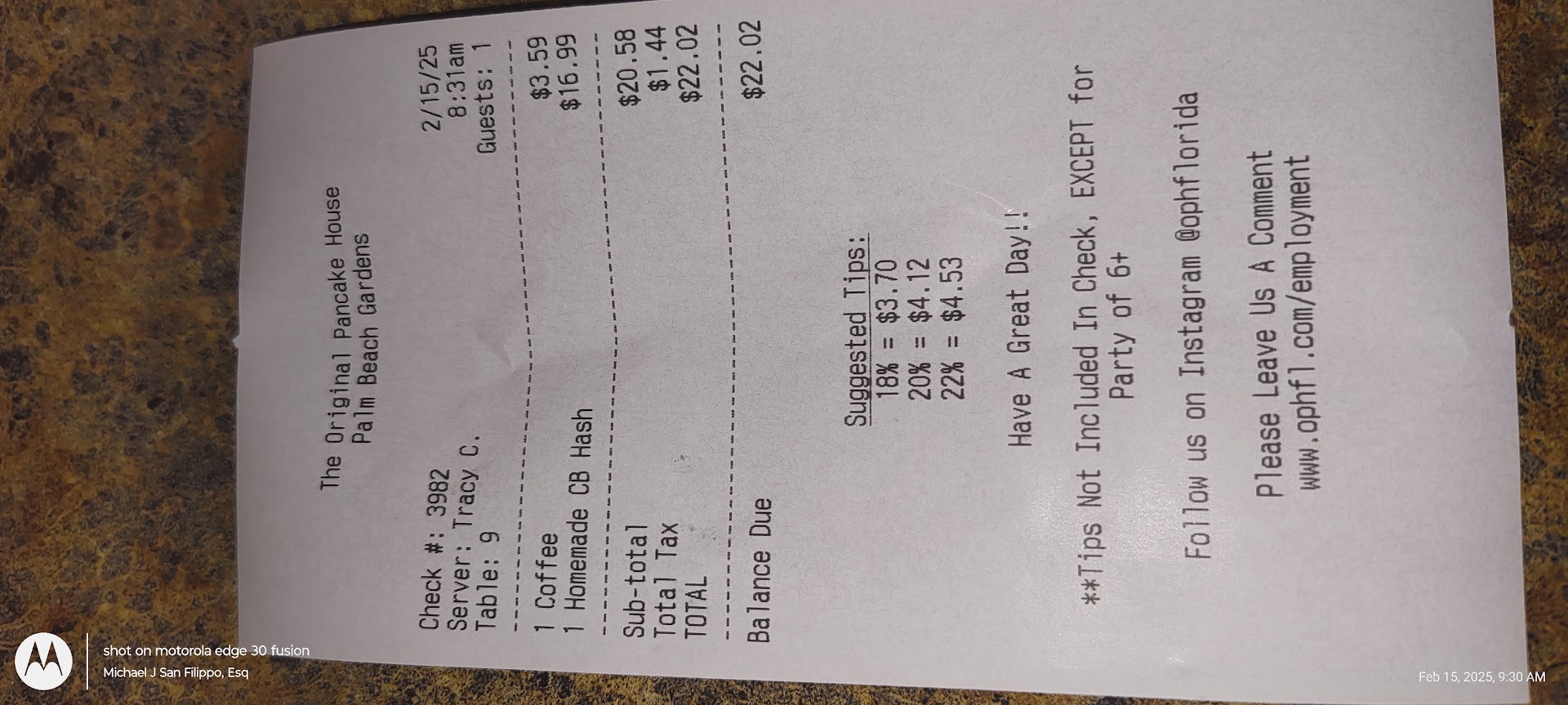 Read morei'm not a complainer but i have to say I am not happy with the service there. I've being there a good amount of times usually with clients or family and friends. but to make this short! the last time I was there by myself this time, I made my usual order which was an egg-white Greek omelette, the waitress took my order and stated that it would take twenty minutes which I told her I already knew, and I reminded her that I specifically wanted egg whites which she acknowledged. about thirty minutes or more later and the place was definitely not crowded!! she brought a regular omelette to me i said this is not an egg-white omelette. she looked at it and said okay ill go check, she took it with her and after a few minutes she returned and said it was not but the cook would have it ready for me as soon as possible. Another fifteen minutes went by and not once did she asked me if i would like a coffee refill! i had to ask another waitress that was passing by for the refill! when she finally brought out the omelette, she said " ho we have to charge you extra for the egg white but on the receipt it will come up as something else. she then apologize and said it was her fault as she did not tell the cook that it was an egg-white omelette!! at that time, i was pissed. I asked her for a to-go box , paid for the order and left. i still have a copy of the receipt with the server name the date and transaction. they wont be...