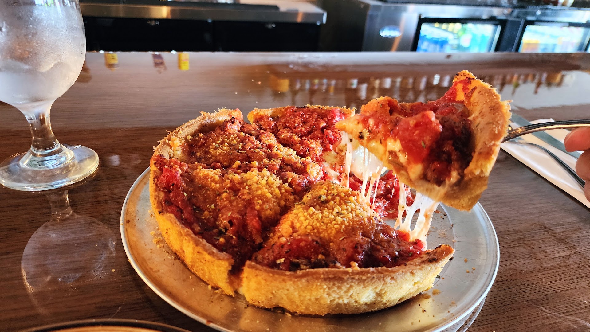 Read moreA sublime pizza experience! Specializing in unique deep dish pizzas, this establishment impresses with a crust that is both flaky and crispy, yet infused with a delightful buttery essence. The cornmeal-based crust provides a distinctive texture that elevates the entire pizza experience.