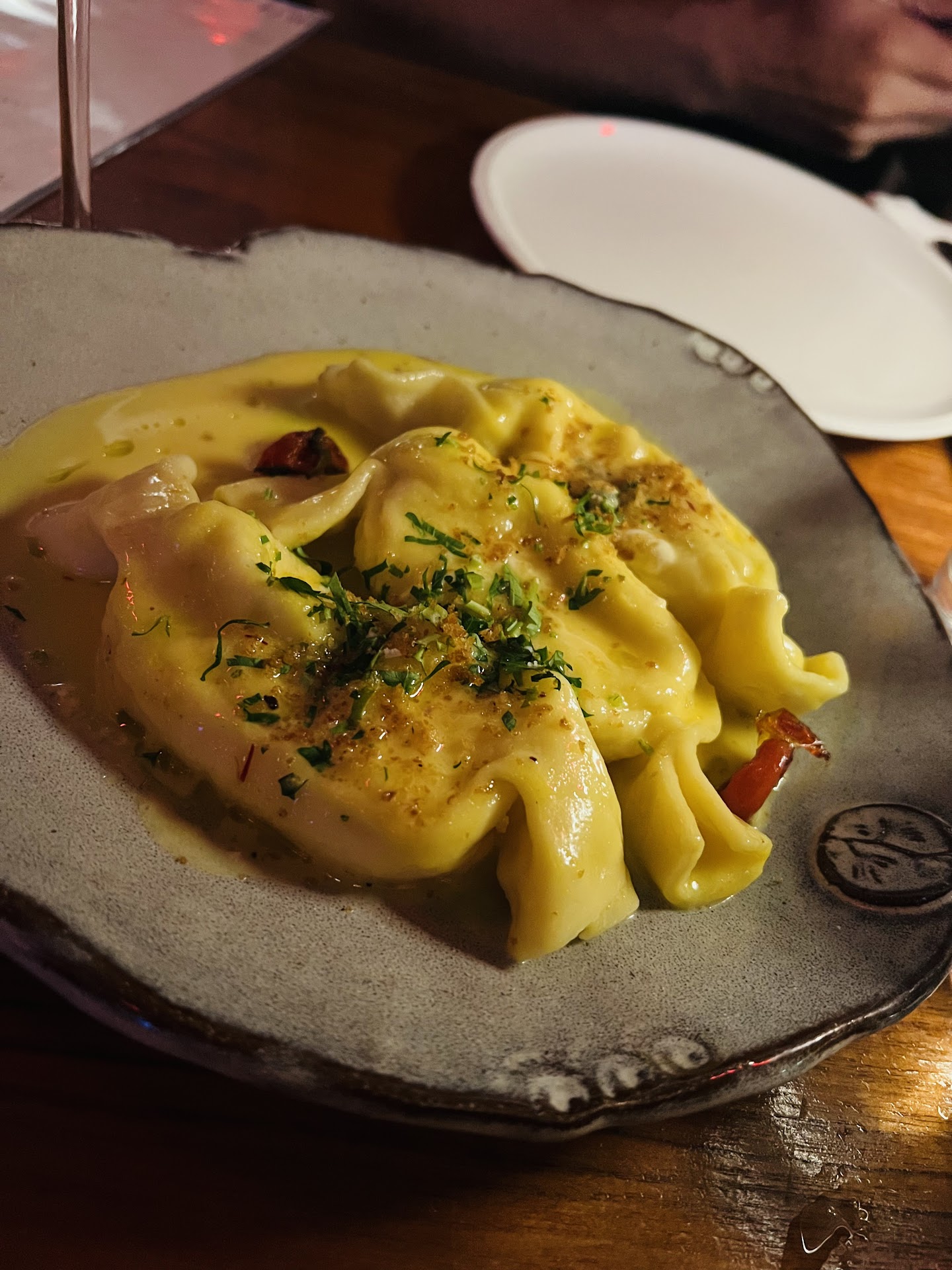 The food overall did not disappoint all of the dinners were rich and bursting with unexpected flavors. Service was excellent. Waitress provided recommendations and brought all the dishes out very quickly. There was a woman lurking in the corner on a laptop she might have been an owner pretending to work. Employees seemed to be walking on eggshells- the vibe was strange. The restaurant turns into a club/lounge. The drinks were very good just expensive.