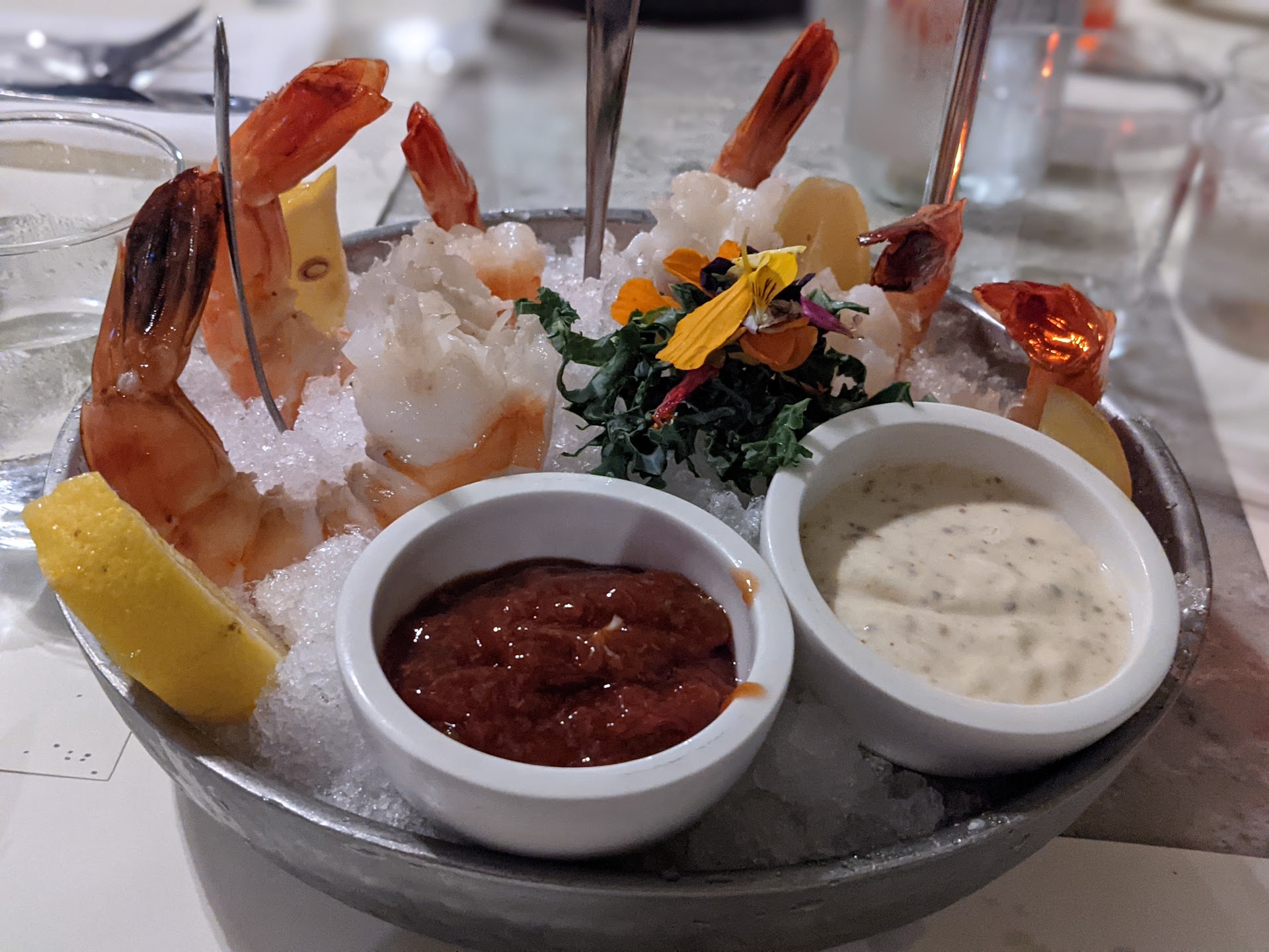 Read moreThis place is very interesting. It has an upscale vibe with beautifully presented delicious fancy food, and then there are TV's at the bar so you can follow whatever game is on while you sip your sparkling water and enjoy the biggest shrimp I've ever seen. So big that they sell them per piece.