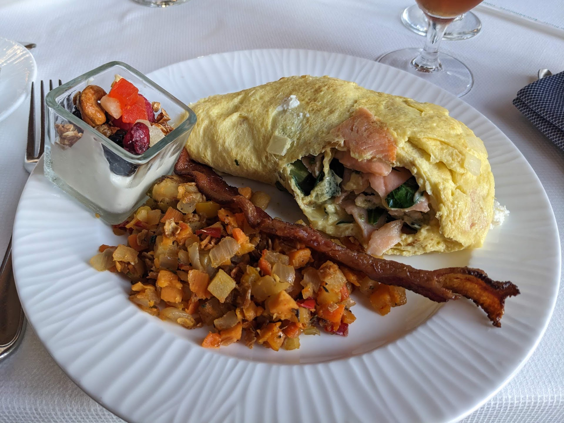 Read moreI consider myself somewhat of a foodie and have sampled a number of buffets both across the US and abroad. On the occasion of my BDay my wife picked this venue as a special one off experience for the two of us. Needless to say, I was most certainly was looking forward to checking off the proverbial list. My impression you ask: As to atmosphere, it most certainly checks off all the boxes. Great history, ambience, superbly kept up, not to mention the beautiful melodies from the harpist as a great backdrop to the amazing vistas. Service you ask, I would rate it as adequate but far from attentive. Now as far as the buffet itself, frankly I feel disappointed and somewhat let down. Yes, the seafood was there and the caviar, as well as the lamb chops. But all and all, nothing really stood out especially when one factors in the price pp and the expectations built into that. No real sampling of freshly baked goods with any spreads were available. No real choices of salads. No charcuterie boards or cheese trays to speak of. The omelette station would be on par with Dennys (?) or not. The lamb chops were cold and overly sweet from the glaze. At this level, maybe a hibachi grill, searing meats to order would be in line of what I would expect. The potatoes were also look warm; mind you that our reservation was for 11:00am when they just opened, not closing time. Also, there was no soup station to speak of. My neighboring Whole Foods’ food stations offer a much greater variety and quite possibly at a much lower price. As for deserts, again mostly adequate but nothing close to Paul’s or even the trusted artisan bakery if you’re lucky to live close to one. Also as I indicated, we were celebrating my BDay, and yes I did get a sample dish of treats and a candle. But again, maybe the pastry chef can prepare among other offerings a small number of mini BDay cakes as a special touch for me and a handful of other guests celebrating their own. So all and all, go for the atmosphere, maybe get a cocktail or two at the bar and perhaps order a la cart at one of the restaurants. As far as the buffet for two, $500 even in today’s economy could afford you better food choices. Many thanks for...